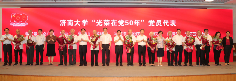 会上,与会人员集体观看了济大党建掠影,共同回顾了学校70多年特别是济南大学成立以来二十年的发展历程和取得的主要成绩。向老党员代表颁发了“光荣在党50年”纪念章并赠送鲜花,向全省优秀共产党员、全省教育系统“两优一先”赠送了鲜花,对济南大学优秀共产党员、优秀党务工作者和先进基层党组织进行了表彰。