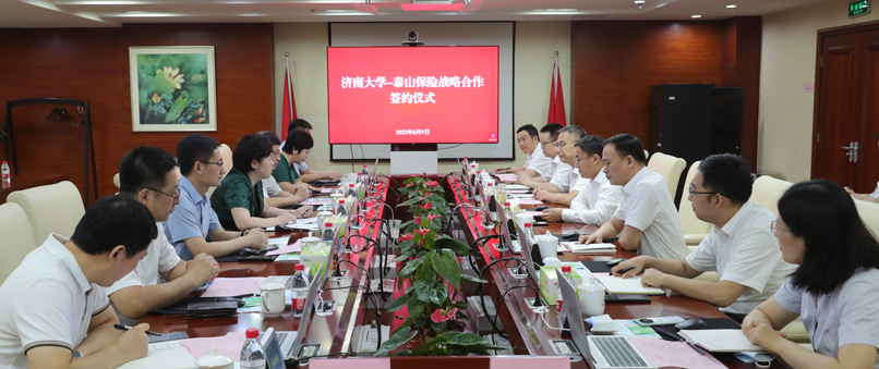 8月9日上午,济南大学与泰山财产保险股份有限公司战略合作签约仪式举行。济南大学党委书记刘春华,副校长杨景波,泰山财产保险股份有限公司董事长朱华建,总经理毛明光出席仪式。泰山保险人力资源部总经理姜敏,规划发展部总经理王鹏飞,营销部总经理马伟新,学校办公室、组织部、社科处、合作发展处、商学院负责同志等参加了活动。