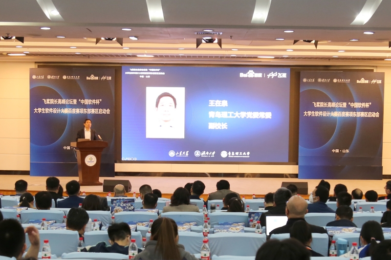 在与会各方的共同见证下,济南市市中区副区长张源、山东大学团委书记姜炳刚、青岛理工大学信息与控制工程学院院长田艳兵、济南大学团委副书记纪祥、百度AI技术生态总监周奇、“中国软件杯”大学生软件设计大赛副秘书长卢秀娜共同启动“中国软件杯”大学生软件设计大赛百度赛项东部赛区赛事。