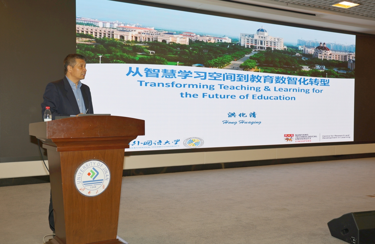 随后,洪化清教授在学校第一学术报告厅为我校教师作了题为“从智慧学习空间到教育数智化转型”的专题报告。洪化清教授以新加坡南洋理工大学的历史沿革和基本校情为例,阐述了国际化的教学理念变革和教学方法选择的重要性,基于自身重大项目及教学研究工作经历,介绍如何运用技术手段促进“教和学”发生变化。他认为,新型学习生态系统的构建需要从教学理念、信息技术、学习空间等三个方面进行改革研究和总体设计,学校应该在大数据学习分析的基础上建立真正以学习者为中心的教学新模式,帮助学生实现自主式、个性化的学习模式转变,从而做到以学习的发生和学生的发展为中心,推动“教和学”的范式转变。为了让教师们更形象地体会到技术手段在教学中的应用,洪化清教授具体阐释了南洋理工大学课堂粘性分析、课堂情感自动分析的操作方法,多角度向教师们展示了如何利用人工智能和大数据学习分析技术,捕捉学生学习过程数据,推进教育教学创新和优质学习发展。