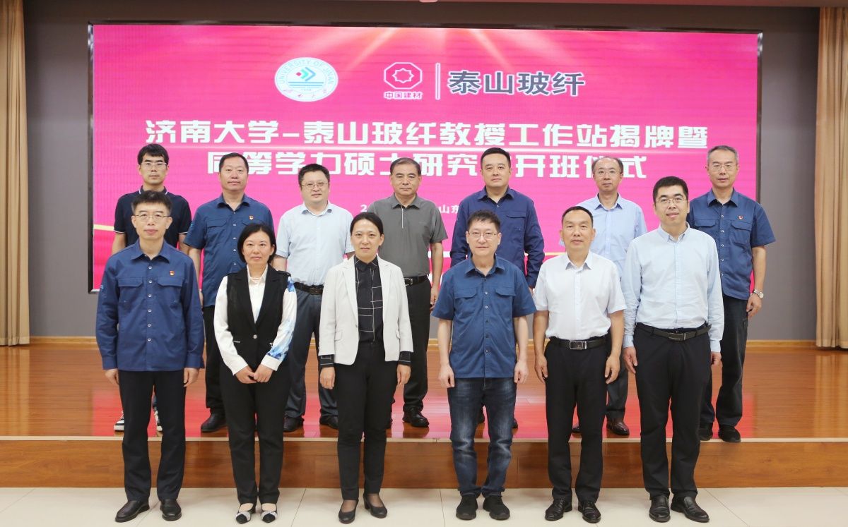 9月21日,济南大学-泰山玻纤教授工作室揭牌暨同等学力硕士研究生开班仪式在泰山玻璃纤维有限公司(以下简称泰山玻纤)总部举行。泰山玻纤党委书记、董事长呼跃武,党委副书记、总经理刘利锋,学校党委常委、副校长商华,学校人事处、研究生院、材料科学与工程学院主要负责同志,济南大学-泰山玻纤教授工作室首任专家、材料科学与工程学院教授岳云龙,泰山玻纤各部门代表,2024级同等学力硕士研究生代表等70余人参加仪式,仪式由泰山玻纤人力资源部部长蔡强主持。