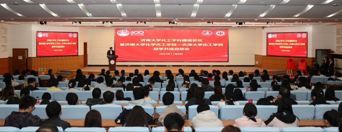 为进一步推动我校化学工程与技术学科发展,提升学位点建设水平,凝练化学化工学科特色,11月9日,我校举办化工学科建设论坛暨济南大学化学化工学院—天津大学化工学院联学共建启动会。本次论坛是天津大学化工学院为庆祝2025年天大化工学科百年华诞推出的“百年百场高峰论坛”活动之一。天津大学化工学院党委书记、国家杰出青年基金获得者汪怀远,党委副书记李晶、靳学峰,化工学院院长助理刘红丽,山东省天津大学校友会化工分会副会长高贯雷等领导专家出席活动。济南大学党委副书记、校长刘宗明,党委常委、副校长黄加栋,发展规划与学科建设处、科技处、化学化工学院等相关部门负责人、教师、学生等300余人参加活动。会议由济南大学化学化工学院党委副书记、院长陈国柱主持。