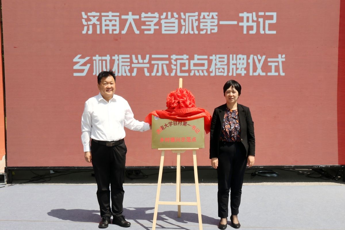 商华与莘县人大常委会党组书记、主任顾磊共同为省派第一书记乡村振兴示范点揭牌。实施乡村振兴战略是党中央作出的重大战略部署,党的十八大以来,山东省奋力推进乡村振兴,农业农村现代化建设取得了长足发展。作为山东省人民政府和教育部共建高校,济南大学始终将服务国家战略、助力地方发展作为使命担当,在基层党组织建设、基础设施建设、产业升级、民生服务等领域取得了显著成效。
