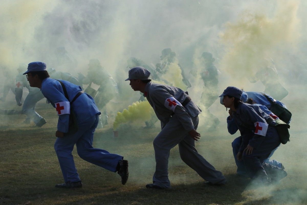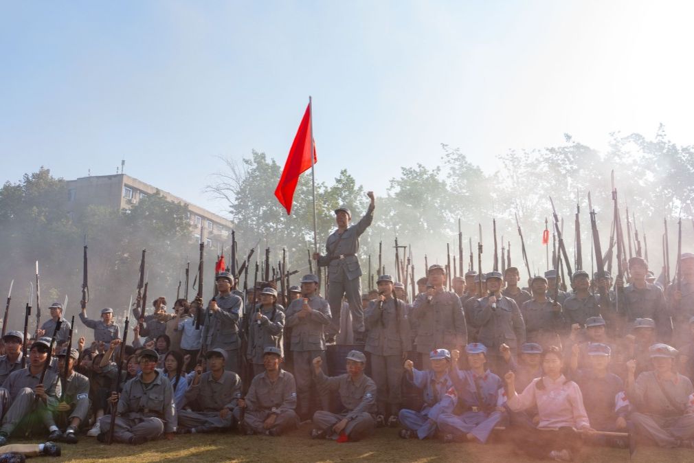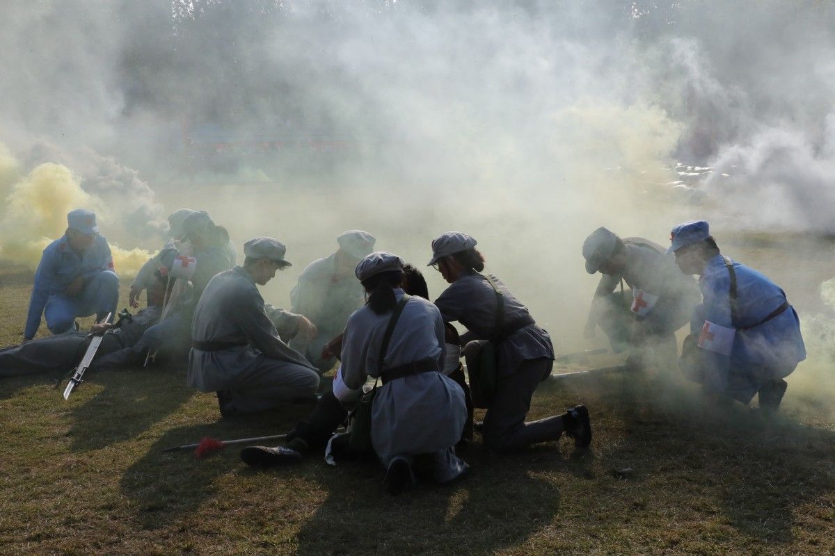 军训科目成果展示正式开始。师生组成23支方队,他们身穿戎装、英姿飒爽,迈着整齐的步伐,喊着铿锵有力的口号,接受领导老师的检阅。在“英雄赞歌”军训成果汇演中,为纪念中国人民抗日战争暨世界反法西斯战争胜利80周年,缅怀为国家独立、民族解放英勇献身的英雄们,同学们以再现1945年即墨登城战的方式,生动诠释了当代青年的铮铮风骨,展现了济大学子青春热血、昂扬向上的风貌。
