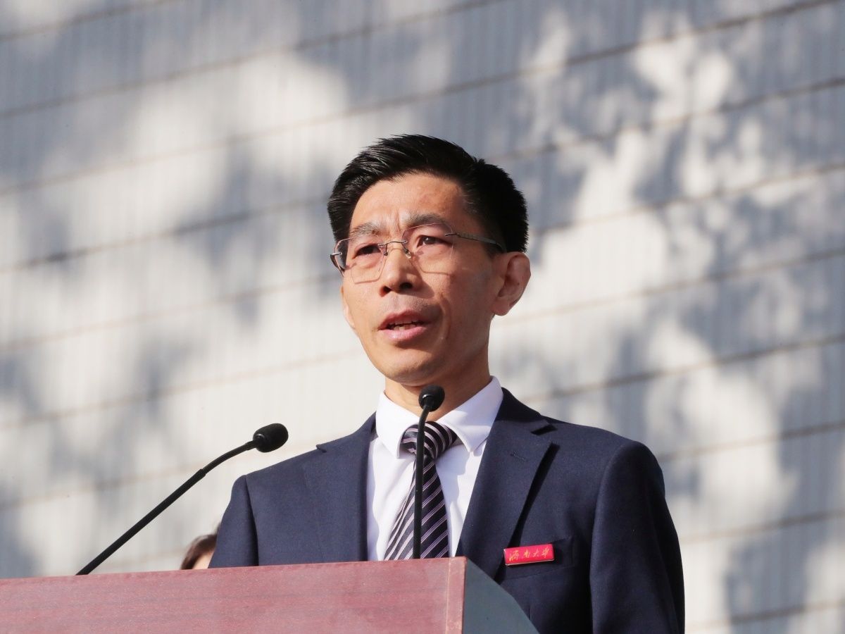 校长刘宗明发表了热情洋溢的讲话,他代表学校党委书记刘春华同志和全校师生员工,向2025级全体新同学,表示热烈的欢迎和衷心的祝贺!向辛勤培育你们的家长、老师,致以诚挚的问候和崇高的敬意!