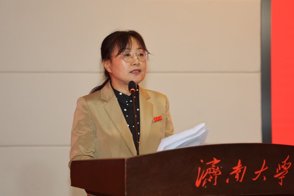 新、老教师代表先后发言。新入职教师代表物理科学与技术学院的李让表达了对加入济南大学大家庭的荣幸与憧憬,感谢学校对青年教师的关怀与培养,感受到学校对人才的重视与关爱,表示将珍惜学习机会,以主人翁的精神不懈奋斗,为学校高水平建设贡献青春力量。杨波教授作为老教师代表结合自己的从教经历,分享了对教师职业的理解与感悟。她勉励新教师恪守育人使命,涵养仁爱情怀,始终保持对知识的渴求、对学生的关爱、对教育的热忱,共担学校发展使命。