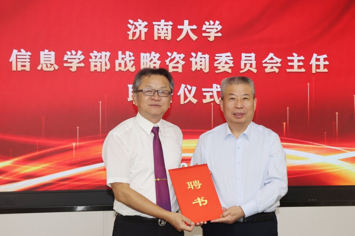 陈俊龙院士对济南大学的信任表示感谢,期望与学校展开密切科研合作。他表示将尽职履责,全力推动信息学部在学科建设、交叉研究和人才培养等方面的创新发展。