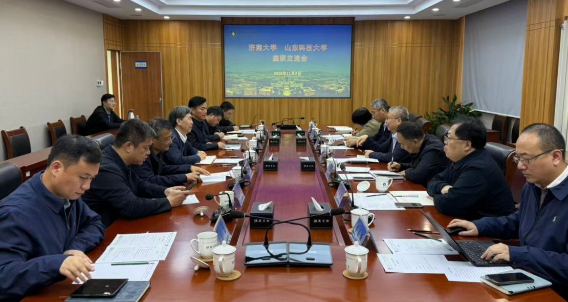 薛庆忠对济南大学一行表示热烈欢迎,介绍了学校近年来在学科建设、科学研究、协同育人、合作办学等方面的工作成效。他指出,济南大学作为综合性大学,办学历史悠久,办学成果颇丰,在材料、化学、水利、计算机等诸多学科方向领域具有独特优势,尤其是在新材料、新能源等新兴领域、新兴产业构建新生态,希望两校充分发挥各自的优势,在协同攻关、联合培养、开放合作等方面取得更大的合作成果,共同推动两校办学取得新成绩,再创新高度。