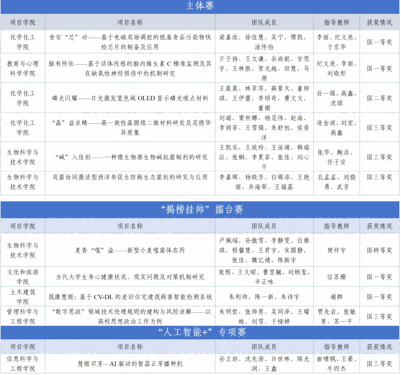 经作品前期评审、国赛展位问询与现场答辩,我校作品凭借出色的创新价值与扎实的研究基础,从全国众多优秀项目的激烈竞争中脱颖而出。获奖信息如下: