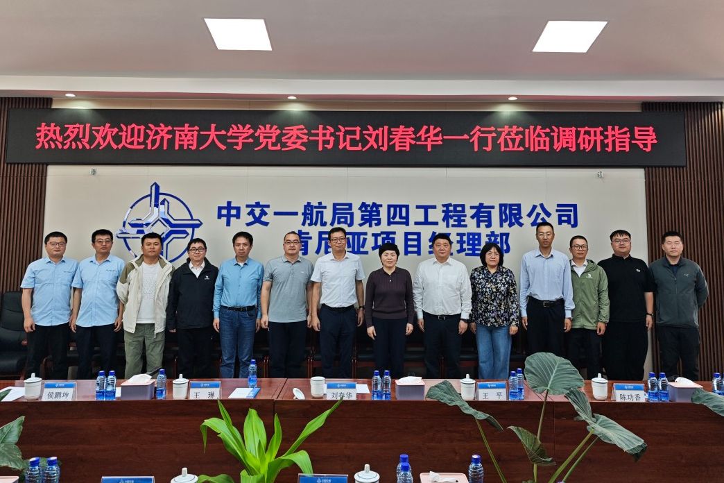 为推动科研成果转化与产学研融合,代表团专程赴中交一航局第四工程有限公司肯尼亚项目部考察,并看望我校校友。代表团与公司总经理王明磊、中交一航局东非分公司总经理王轶等公司领导及项目工程师、我校材料科学与工程学院2025届硕士研究生校友杨辉等企业代表座谈交流。代表团参观工程现场并听取项目建设、研发情况介绍,并实地考察了我校建材重点实验室“复杂环境下混凝土多功能复合助剂设计及严苛地材适应性调控研究”成果在肯尼亚项目中的应用情况。双方在总结前期合作基础上,就济南大学科研成果赋能项目建设、合作攻关工程应用问题、肯尼亚本土人才联合培养、产学研国际合作平台搭建等议题进行深入探讨,并达成重要共识。