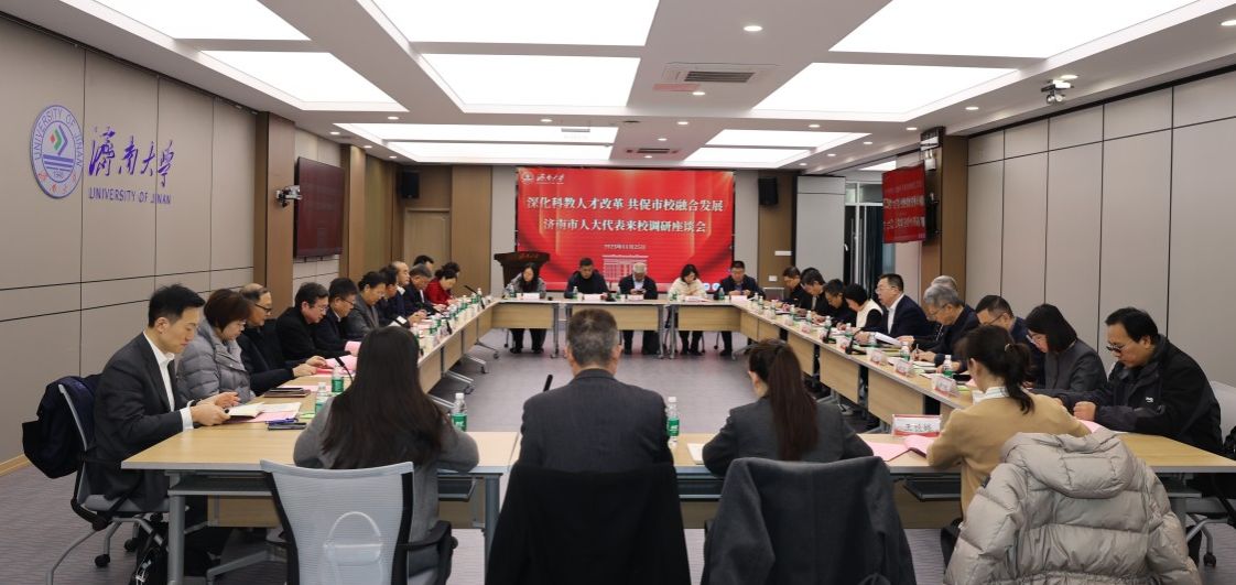 座谈交流环节,代表们围绕“教育科技人才一体化改革、校城深度融合、产学研协同赋能”展开交流。在交流过程中,各位代表以强烈的政治自觉对标中央要求,结合济南产业发展需求与济大“冲一流”建设实际,提出宝贵建议。代表们建议,要进一步聚焦精准对接,构筑校城共生共荣的发展共同体。围绕济南市着力打造的重点产业集群和布局的未来产业方向,引导学校的新一代信息技术、新能源科学、空天产业等优势学科力量进行靶向对接,共同凝练科研课题,共同组建创新团队,使大学的创新链更加紧密地嵌入区域的产业链。要进一步强化机制创新,激发服务区域发展的内生动力。强化“扎根地方、服务发展”的鲜明导向,将服务区域经济社会发展更深层次地内化为学校的战略选择和行动自觉。要进一步汇聚系统合力,在绘就校城共生共荣新篇章中展现新作为。各位代表纷纷表示,将继续坚定不移地把服务市校融合高质量发展作为履职尽责的重点方向,综合运用专题调研、代表视察等多种形式,持续关注并全力推动相关职能部门在完善融合机制、落实合作项目、强化服务保障等方面的工作,主动为校企合作、成果转化牵线搭桥,共同奏响校城融合、共赢发展的精彩华章。