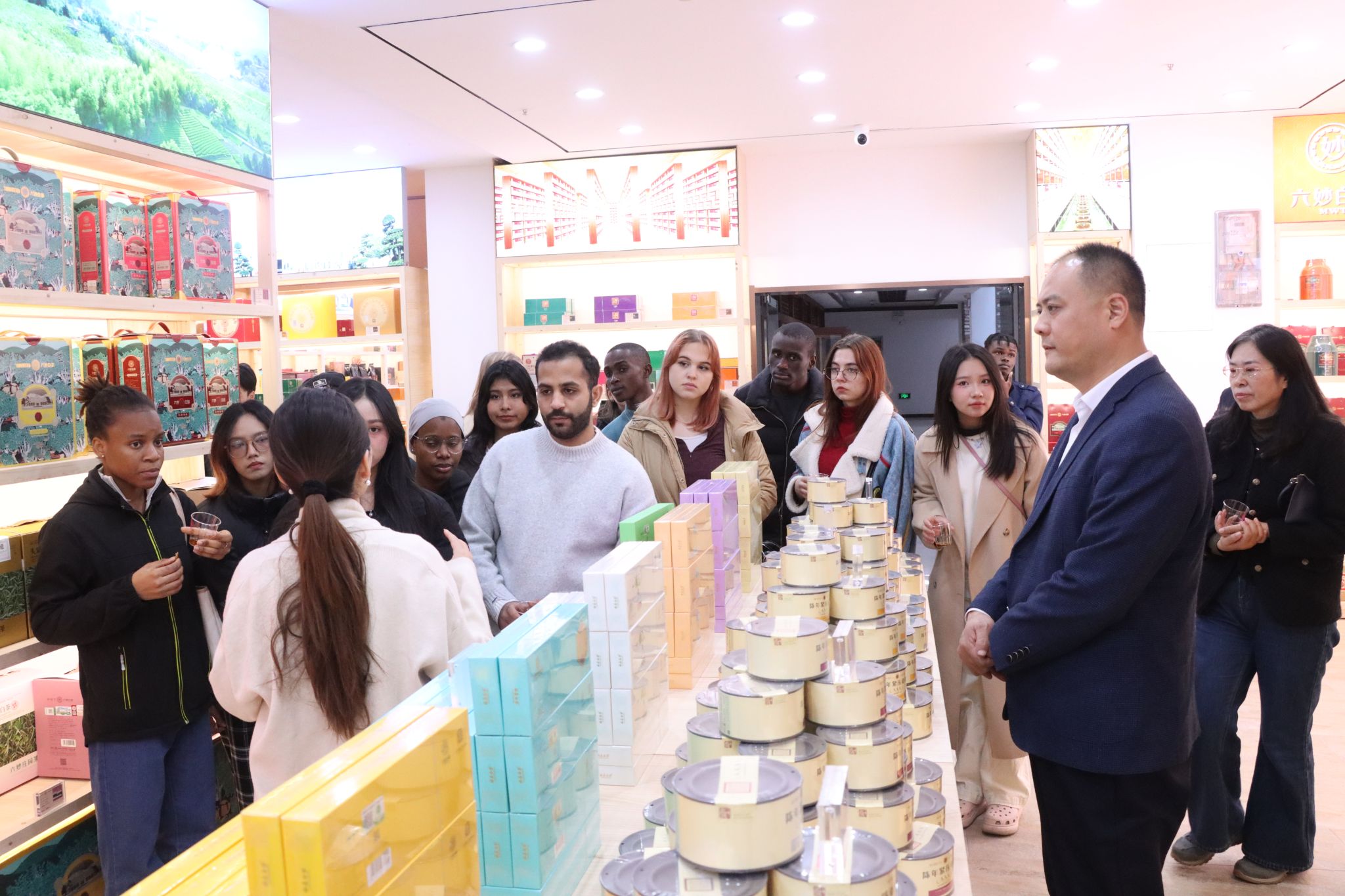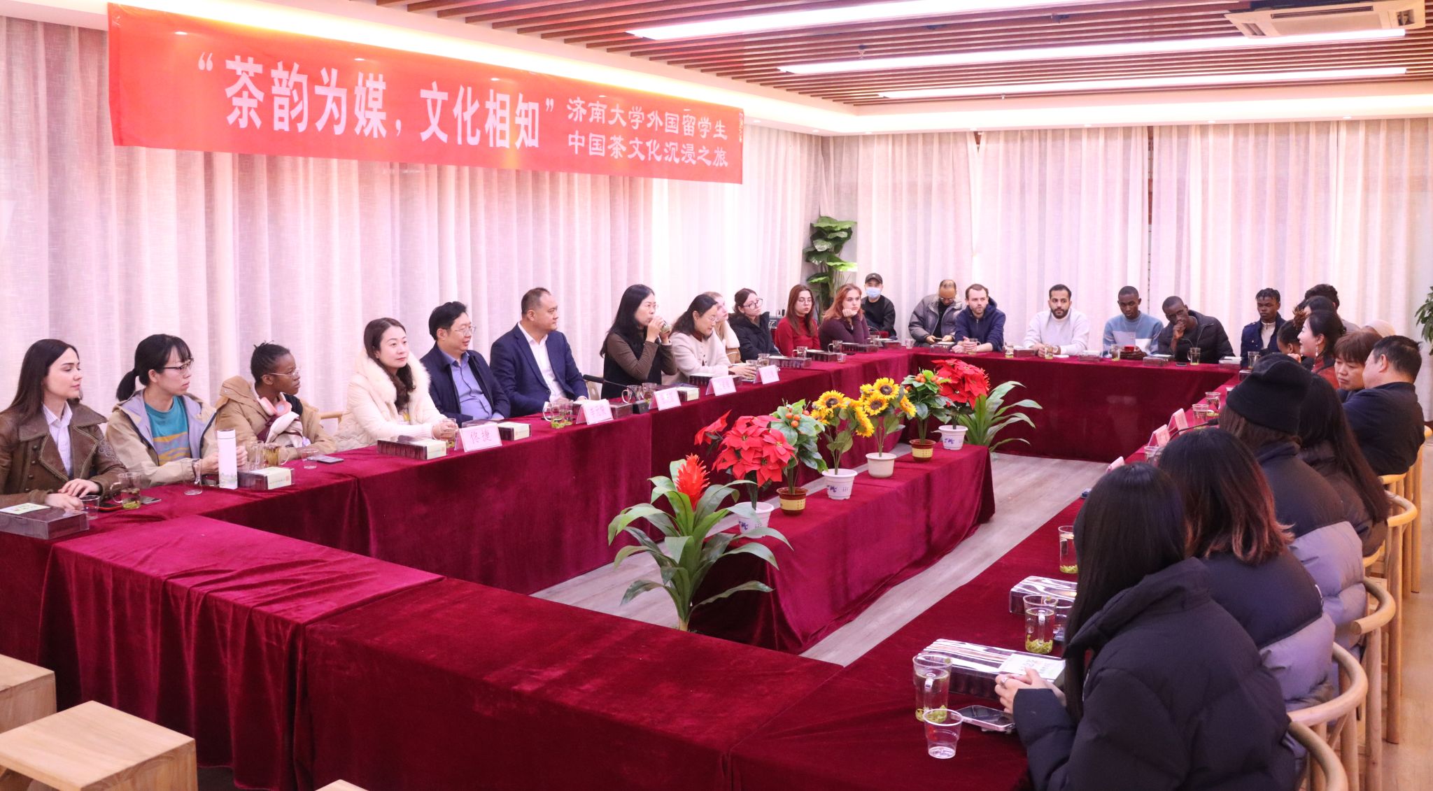 11月27日,济南大学国际教育交流学院组织来自13个国家的21名国际学生赴济南广友集团(广友茶城济南1953茶文化体验中心)开展中国茶文化体验主题参观考察活动。济南大学党委副书记张庆国,学校办公室、国际教育交流学院等有关负责人和教师共同出席活动。
