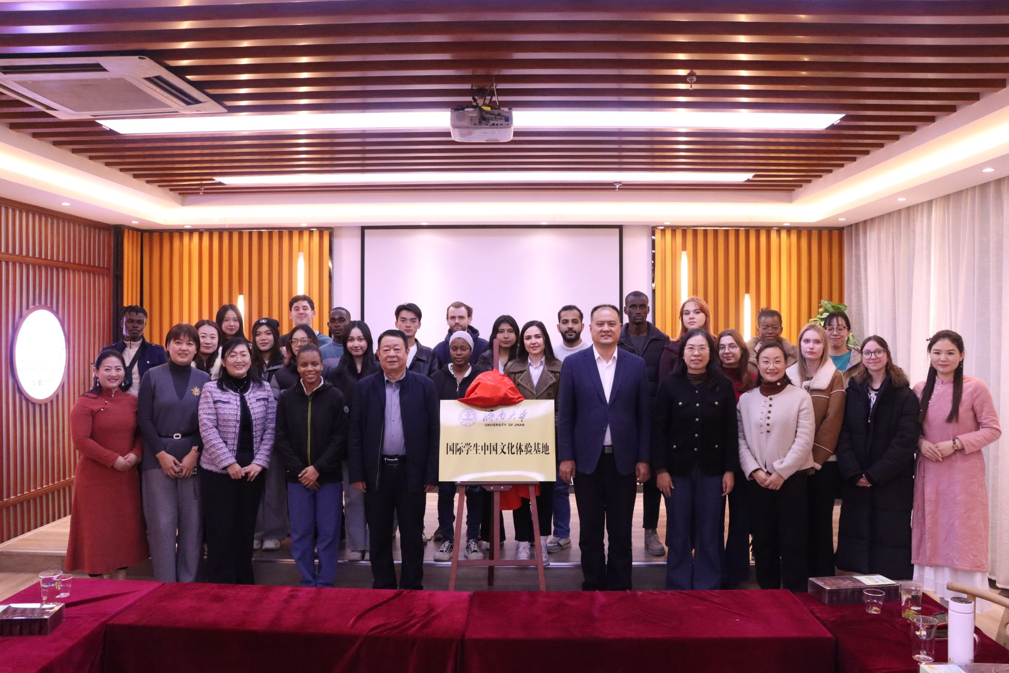 最后,济南大学党委副书记张庆国与济南广友物流配送集团有限公司党总支书记、董事长于志敏一同为“济南大学国际学生中国传统文化体验基地”授牌仪式揭牌。该基地的设立将为国际学生茶文化教育提供长效实践平台,助力中外文化交流常态化开展。