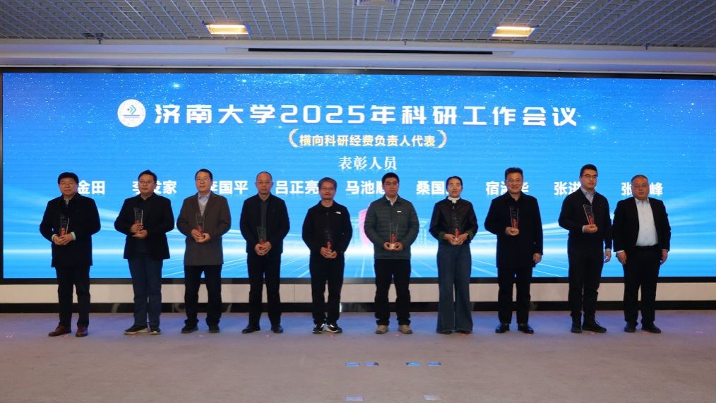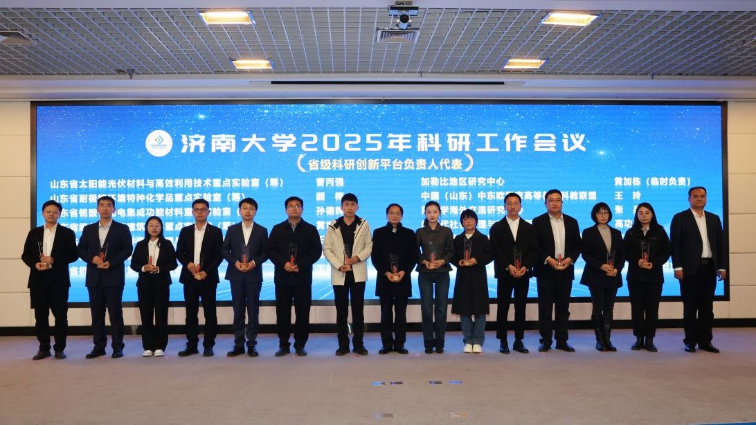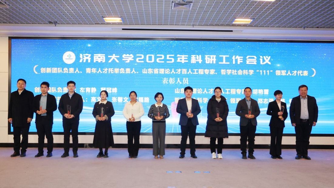 科研工作会议由党委常委、副校长黄加栋主持,刘春华作了题为《科学谋划布局 聚力突破提升——奋力开创济南大学科研事业新局面》的报告,系统总结了“十四五”以来学校科研工作在体制机制改革、平台建设、社会服务、学术交流等方面取得的新成效;深入分析研判当前面临的新机遇、新挑战与新要求,科学把握学校高质量发展对科研工作的新要求,强调要正视问题,“刀刃向内”,系统排查、深入剖析当前科研工作中的不足和短板,聚焦症结精准发力,切实将短板补齐、弱项做强;未来两年要全面实施高层次科研提升工程,着力在体制机制、平台能级、团队建设、成果质量与社会服务等方面实现新突破,奋力开创科研工作新局面,为高水平大学建设作出新的更大贡献。会上,材料科学与工程学院、政法学院作为优秀科研单位代表,周伟家、宋洪民作为优秀科研个人代表作了交流发言。学校领导为“十四五”以来承担国家级重大重点项目的负责人、获得省部级科研成果奖励的完成人等93位获奖代表颁发了奖杯。