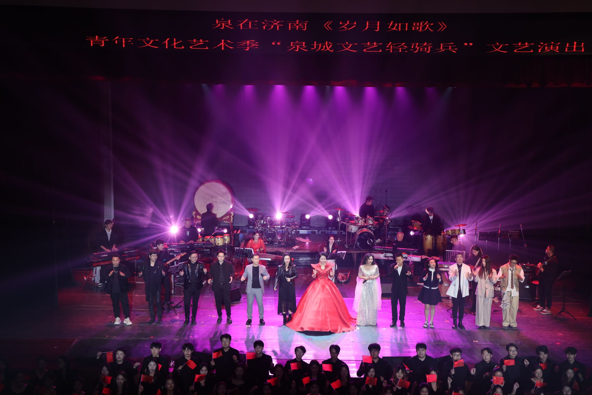 12月19日晚,由济南市文联与济南大学共同主办,济南市文艺创作研究院、济南市音乐家协会、济南大学美育学部、宣传部、团委、音乐学院联合承办的“泉在济南 岁月如歌”青年文化艺术季——“泉城文艺轻骑兵”文艺演出,在济南大学大礼堂精彩上演。济南市文联党组书记、副主席文东河,中国文化报山东记者站、文旅中国山东客户端总编辑于怀峰,济南大学党委副书记商华,济南大学党委常委、纪委书记、省监委驻济南大学监察专员续铁,济南市委宣传部、市文化和旅游局、市中区文联、济南大学相关职能部门与二级学院负责同志,济南音乐界专家学者、音乐人,与济南大学师生一同观看了演出。