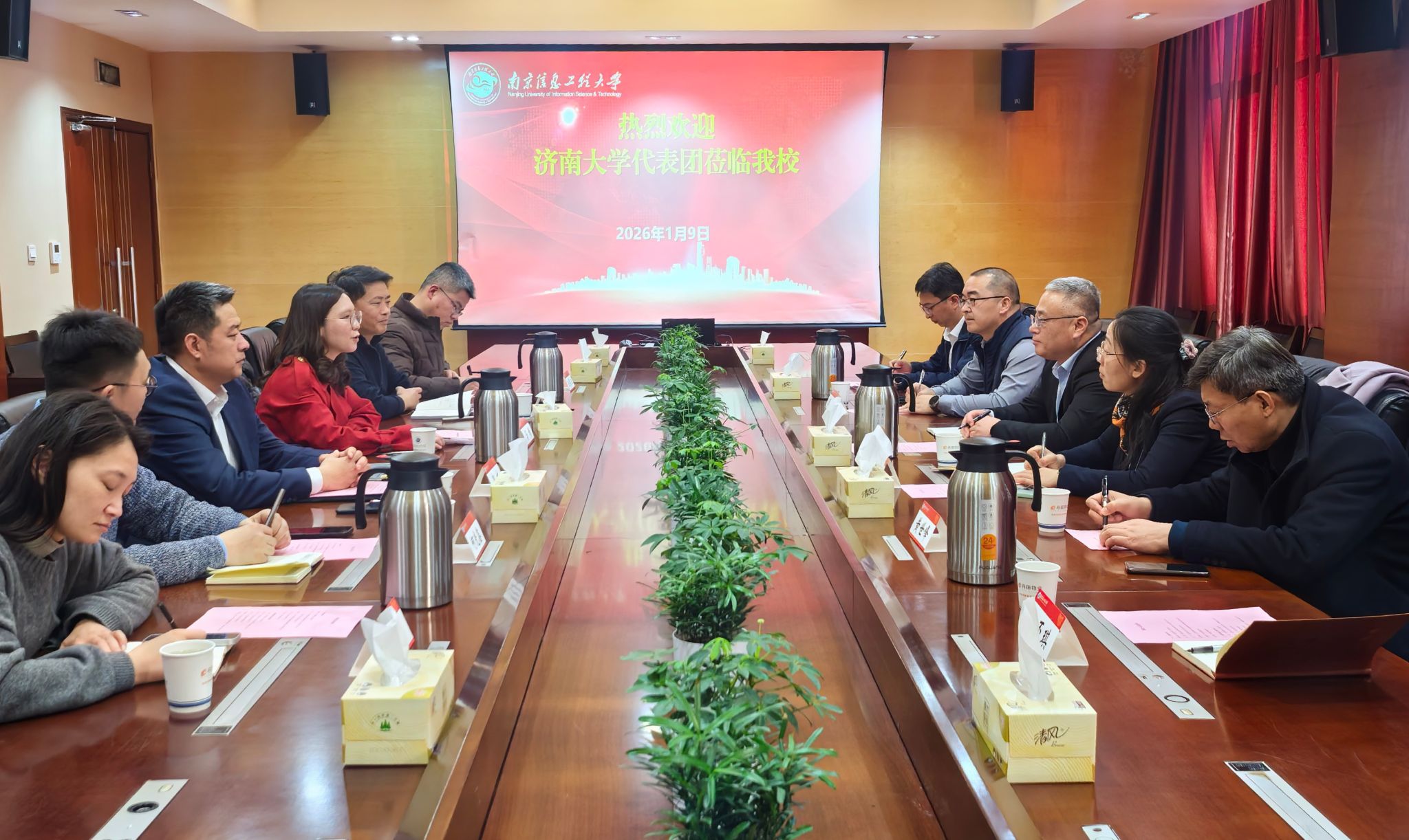 为深入学习借鉴国内兄弟高校在推进高水平教育对外开放方面的先进经验,进一步推动我校国际化办学内涵式发展,1月9日,学校党委常委、副校长黄加栋带领科技处、国际合作与交流处、山东省绿色与智能建筑材料重点实验室等部门负责人到南京信息工程大学调研交流。南京信息工程大学党委常委、副校长马嫣,国际合作与交流处、科技处、雷丁学院、沃特福德学院等部门负责人参加交流活动。
