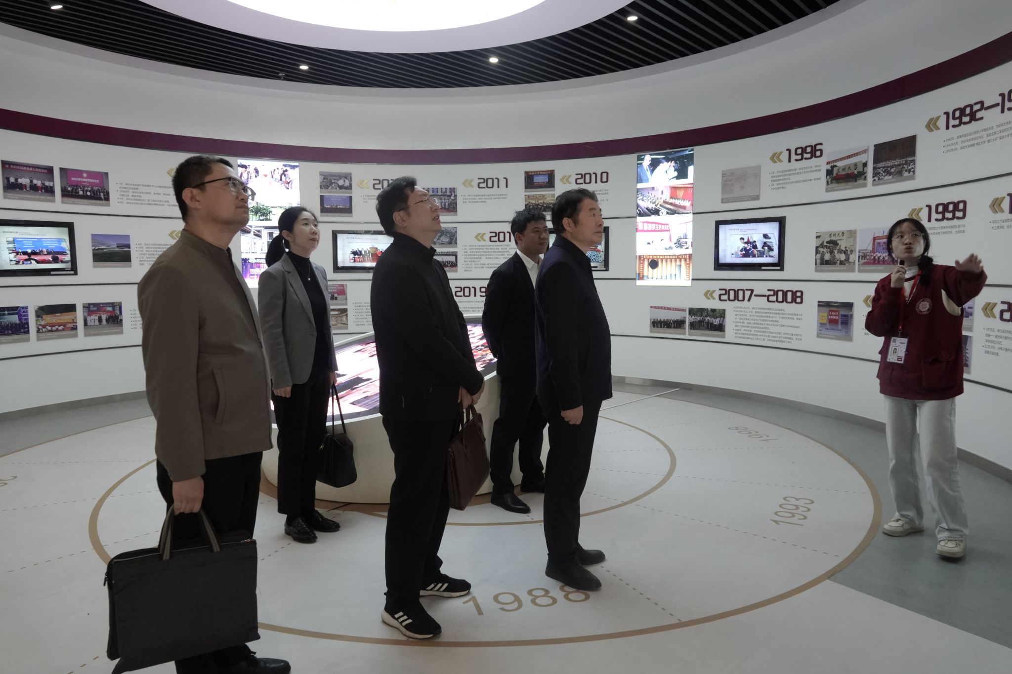 在深圳理工大学,调研团队参观了学校办学历史与发展成就展,重点参观了袁庚书院,深入了解该校以书院制为载体的校园文化培育模式,并与深圳理工大学党委副书记王慧以及相关部门负责人进行了座谈交流,结合本校办学实际与发展特色,系统分享了在高校内部治理领域的实践探索与创新成果。