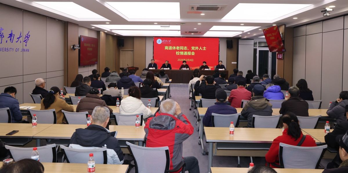 会上,刘春华通报了2025年学校事业发展情况,并从党的全面领导、事业发展合力、人才培养质量、学科科研实力、师资队伍建设、开放办学格局、服务保障水平、离退休和统战工作等八个方面对学校取得的成绩进行回顾。她指出,2025年,全校师生员工在学校党委坚强领导下,以习近平新时代中国特色社会主义思想为指导,深入学习贯彻党的二十大和二十届历次全会精神,扎实开展深入贯彻中央八项规定精神学习教育,认真落实党中央决策部署和省委工作要求,统筹推进学校第四次党代会部署、“十四五”规划和“双高”建设任务,持续深化改革,勇于担当实干,推动学校事业高质量发展取得新成效。她强调,离退休老同志是学校建设的参与者、济大精神的传承者,更是高水平大学建设不可或缺的宝贵资源;党外人士是学校事业发展的重要力量,在教学科研、建言献策等方面做出了积极贡献。学校党委将一如既往关心支持大家的发展,用心用情做好各项服务保障工作。刘春华还介绍了2026年学校重点工作,她表示,今年是“十五五”规划开局之年,也是推动学校第四次党代会目标任务落地见效的攻坚之年。学校将加快学科专业设置调整优化,扎实推进新一轮学位点申报,培育更多标志性成果,精准高效引才育才用才,持续完善内部治理,团结凝聚各方智慧和力量,共同建设奋进济大、美丽济大、幸福济大,全力谱写学校高质量发展新篇章。最后,刘春华代表学校党委和行政,对各位老领导、老同志、党外代表人士的关心支持表示衷心感谢,并向大家致以诚挚的新春祝福。