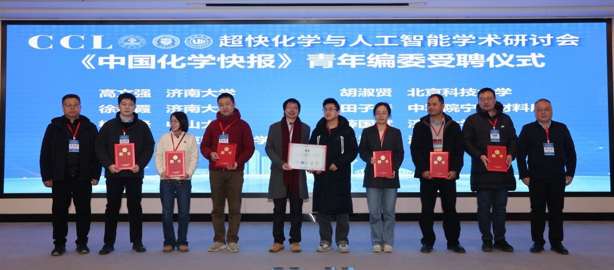 开幕式上举行了《中国化学快报》青年编委受聘仪式,黄加栋、郭焕芳共同为来自中山大学、华东理工大学、北京师范大学、北京科技大学及济南大学等多所高校的青年学者颁发了聘书。