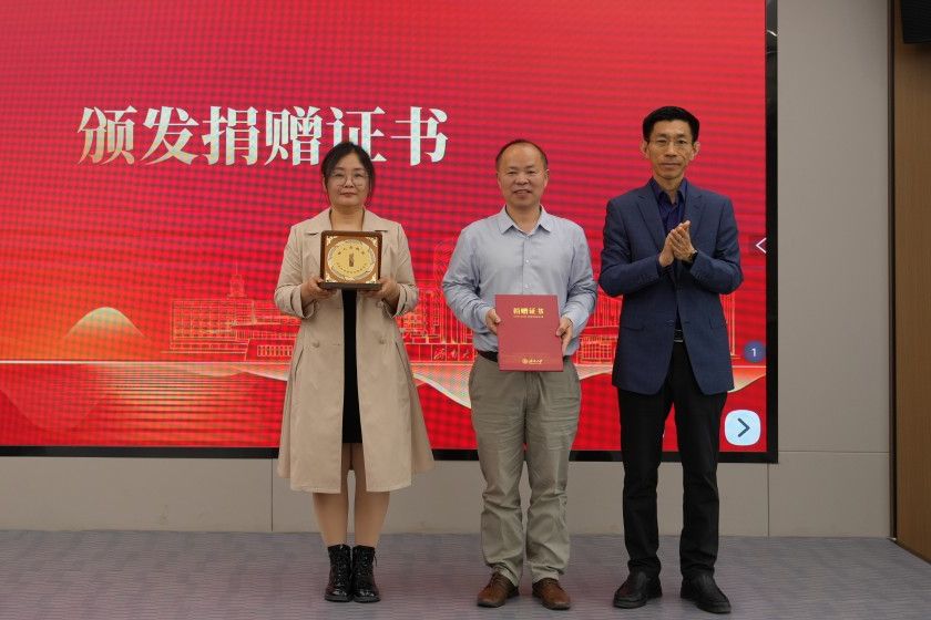 捐赠仪式上,于杰分享了自己在济大的求学时光与深耕新材料领域的创业历程,表达了对母校培育的感恩之情,以及设立奖学金助力学弟学妹成长、反哺母校教育事业的初心。合作发展处处长刘振与于杰校友共同签署捐赠协议,李强为于杰、莫海林两位校友颁发捐赠证书及纪念奖牌。