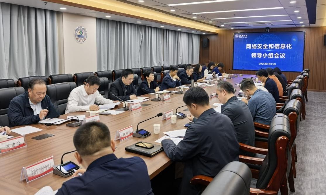 会上,网络安全和信息化领导小组办公室主任李树人汇报了《国际学术资源访问通道建设方案》及《“十五五”教育数字化专项规划(草案)》两项议题,信息管理处工作人员汇报了学校数据可视化中心整体建设情况。各成员单位围绕汇报内容进行了交流发言。
