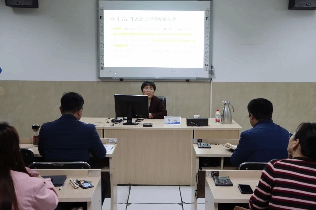 北京外国语大学中国外语与教育研究中心主任何伟以“生态语言学与生态话语分析”为题,回顾了生态语言学发展历程,介绍了生态话语分析研究范式,包括概念、指导思想、理论手段以及应用领域。