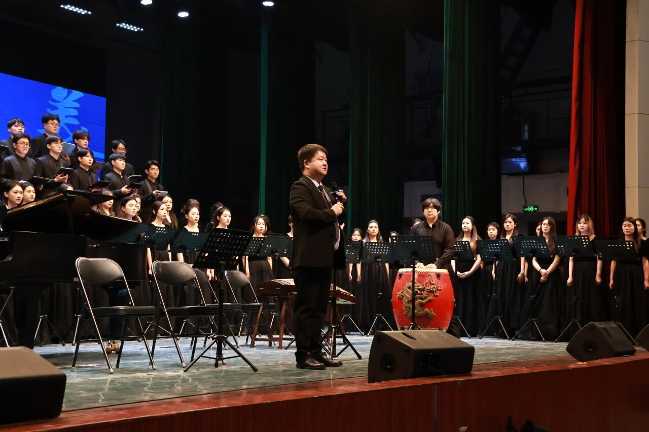 本次大讲堂由山东泉城合唱团常任指挥、山东省合唱联盟副主席田浩副教授担任主讲。田浩以其深厚的学术素养与丰富的舞台经验,从合唱的“声音融合”“情感共鸣”与“文化传承”三个维度展开,系统阐释了合唱如何将个体的“我”凝聚为集体的“我们”。他以《江城子·密州出猎》《郑风·子衿》等古典诗词合唱作品为例,解析了合唱艺术对中华优秀传统文化的创造性转化;同时,通过《如愿》《夜空中最亮的星》等现当代作品的演绎,展现了合唱与时代精神的同频共振。讲座中,田浩指出:“合唱不仅是声音的艺术,更是集体的哲学、情感的共鸣。它教会我们在倾听中协作,在和谐中成就彼此。”