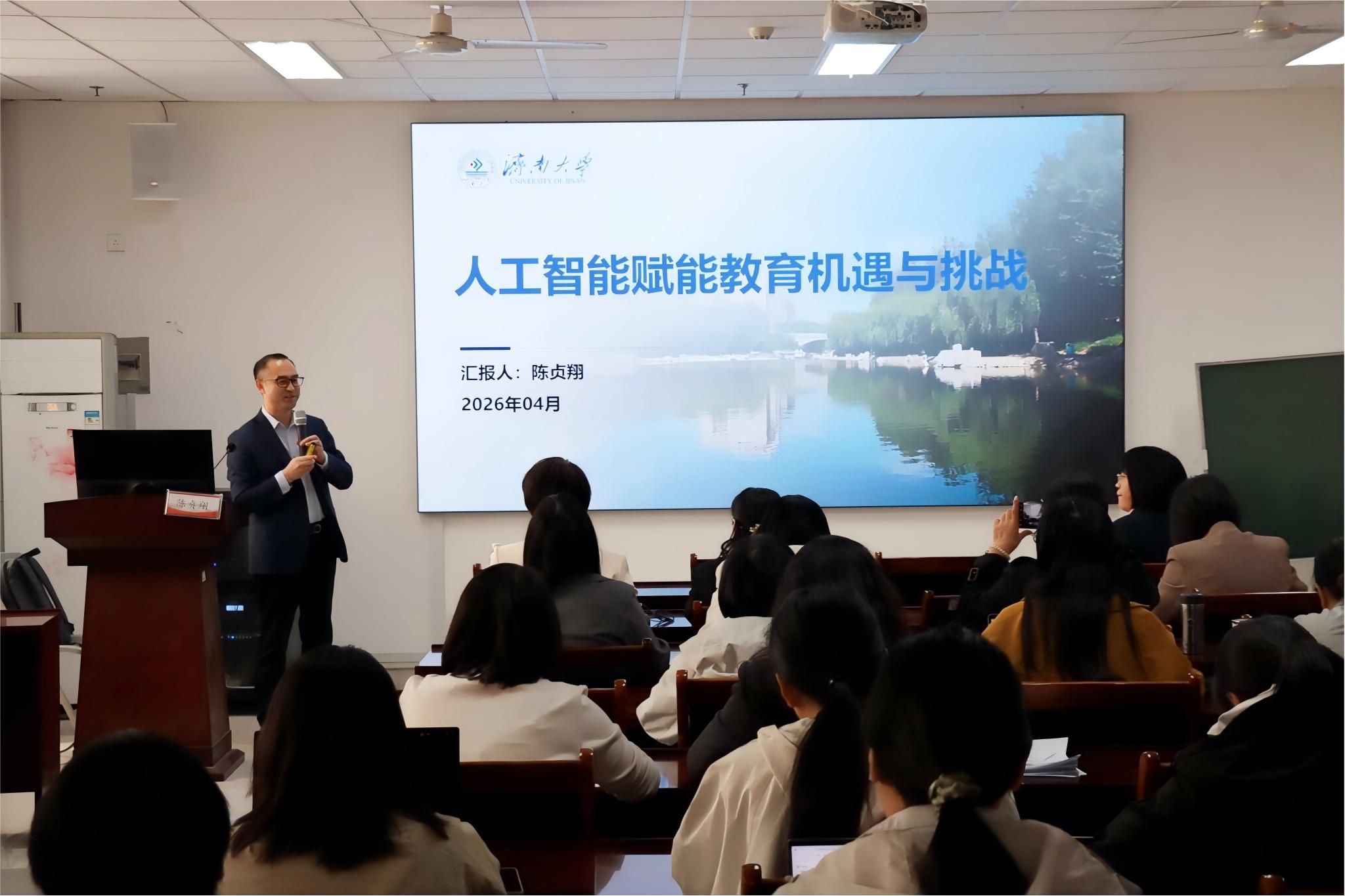 为深入贯彻国家教育数字化战略部署,助力学院教师把握人工智能发展趋势,深刻理解其对教育教学带来的机遇与挑战,4月7日,学院特邀学校教务处处长陈贞翔作“人工智能赋能教育机遇与挑战”专题讲座。学院院长陈功香主持,全体专任教师参会。