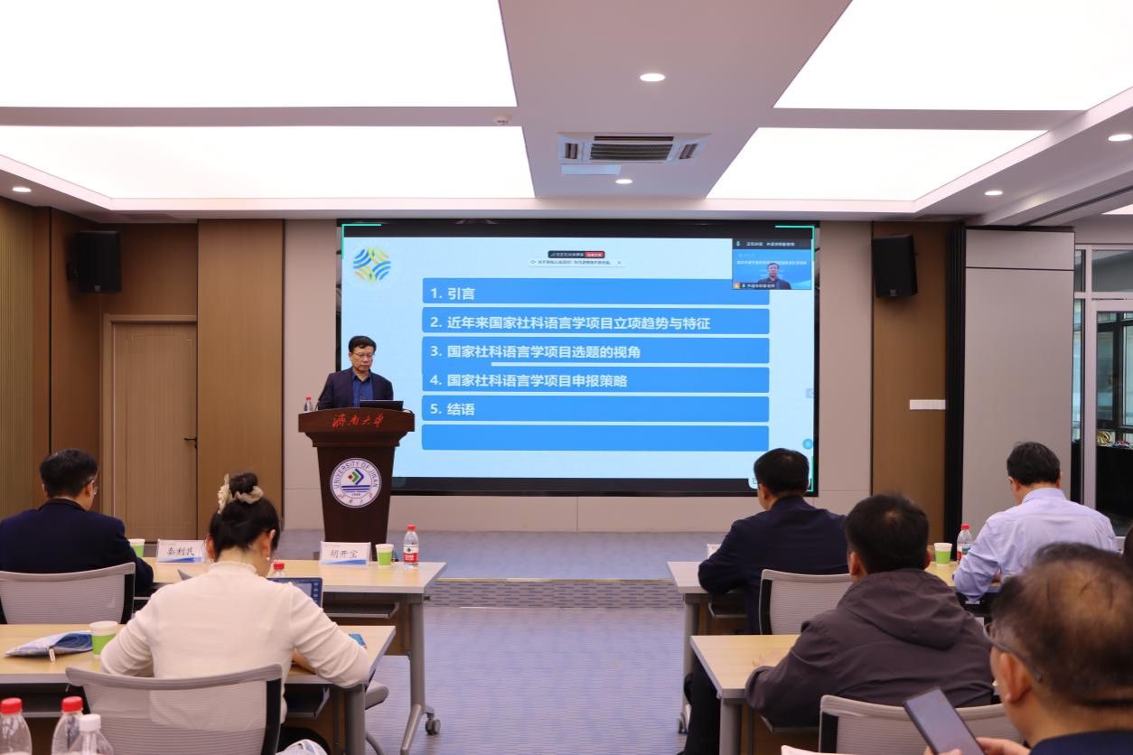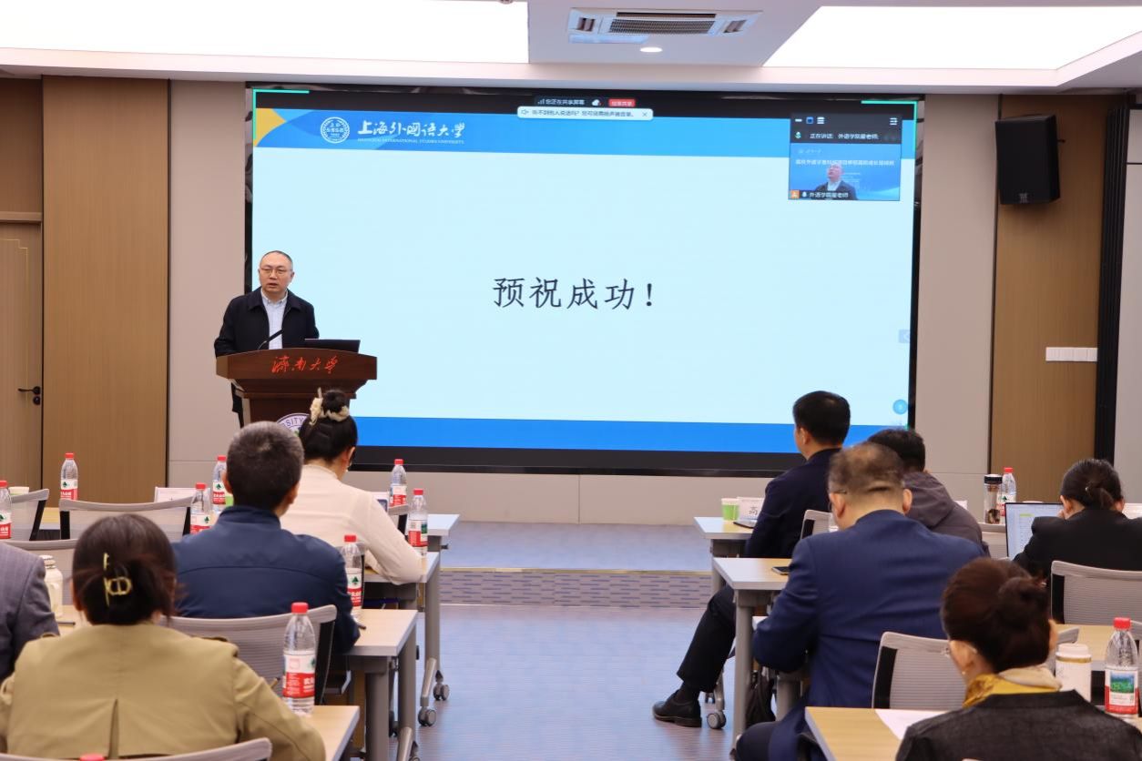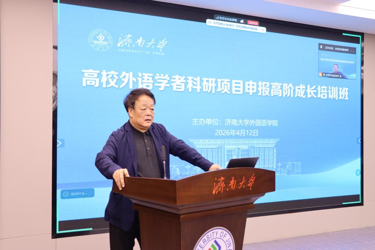 4月12日,由济南大学外国语学院主办的高校外语学者科研能力高阶发展培训班在济南大学第五学术报告厅举行。本次培训班采取线上线下相结合的方式,吸引了来自省内外20多所高校的外语学科骨干教师共计40余人参加。