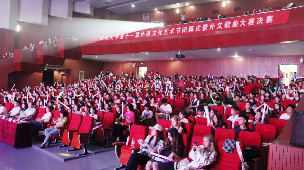 千语荟萃,序启新章;声而不凡,音为梦响。6月20日晚,由校团委主办、外国语学院承办的济南大学第十一届外语文化艺术节闭幕式暨外文歌曲大赛决赛在大礼堂举行。烟台大学外国语学院师生代表应邀出席,与我校800余名师生共赏这场精彩的视听盛宴。