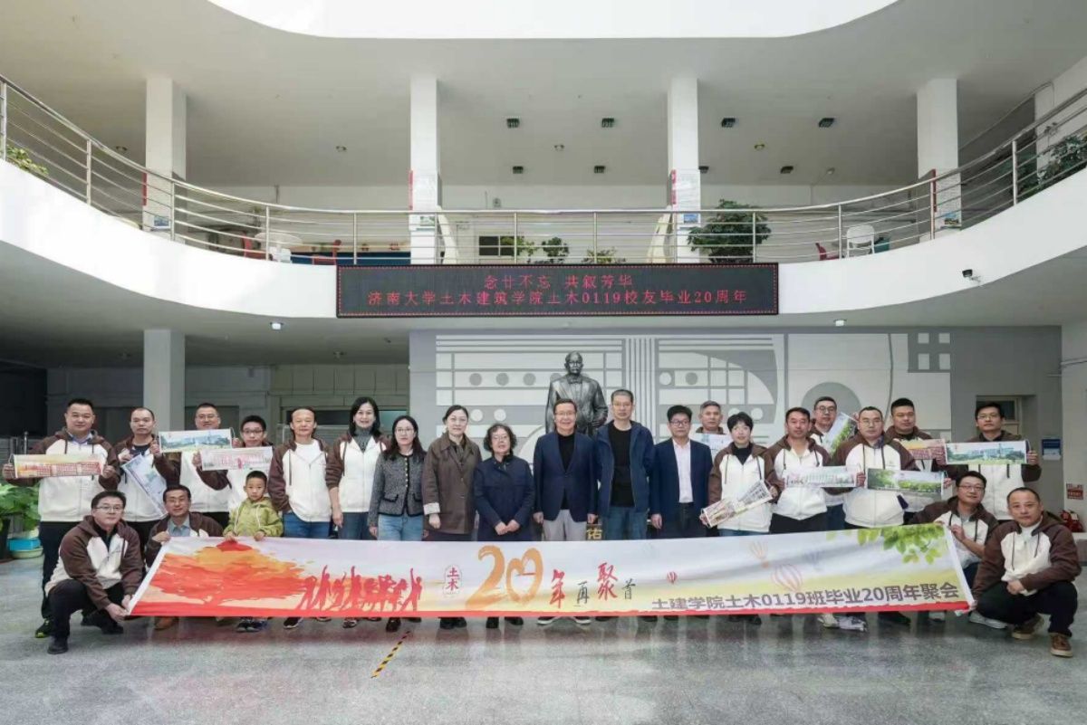 10月18日,恰逢济南大学建校77周年校庆之际,土建学院土木0119班校友满载思念重返母校,共赴一场跨越二十载的青春之约。学院领导班子成员、专业教师代表、时任学院领导及辅导员等悉数到场,与校友们重温校园岁月,共话成长情谊。