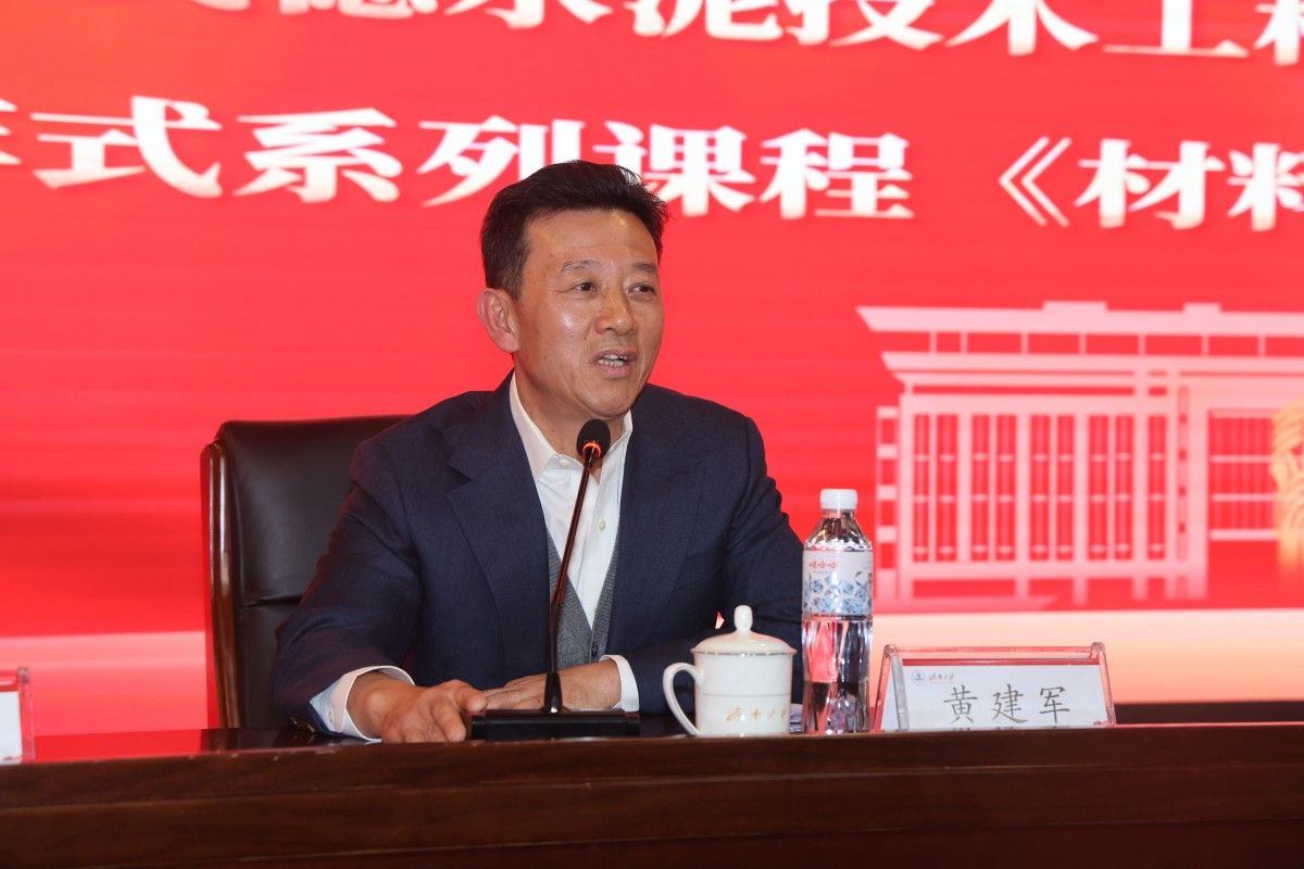 专题报告由材料科学与工程学院院长赵德刚主持。黄建军董事长以“材料创造美好未来”为题作专题报告。报告系统梳理了水泥产业的发展历程,深入阐释了当前水泥领域的技术水平,并详细介绍了我国水泥技术应用海外的发展现状。他结合专业视角与行业洞察,提出了水泥产业未来在绿色低碳技术创新、智能化生产体系构建、环境保护协同处置等方面的重点发展方向。在报告会研讨环节,现场学生反响热烈、踊跃提问。黄建军董事长围绕水泥生产技术前沿等议题,与师生们展开了深入交流。他表示,材料科学发展永无止境,材料科学与工程专业前景广阔,通过深入互动,不仅生动展现了他对水泥材料领域的热切期盼,也以自身的阅历与成就,为学子们的职业发展指明了方向、树立了楷模。