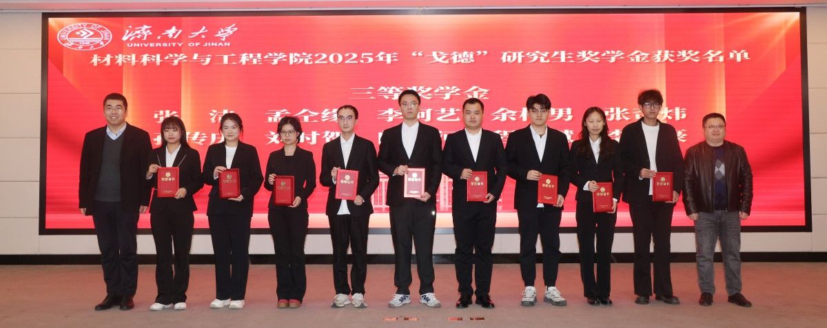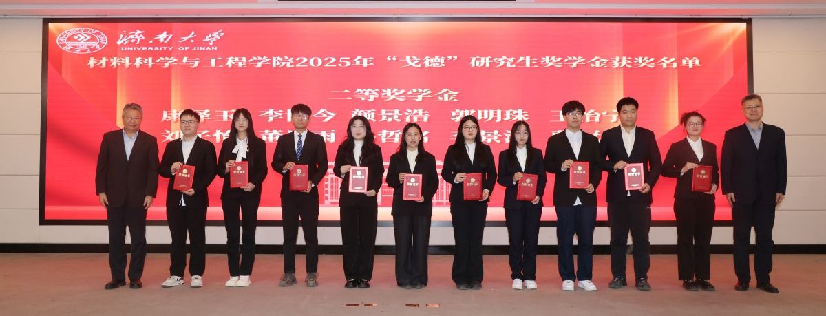 济南大学材料科学与工程学院“戈德”硕士研究生奖学金,是由济南大学材料科学与工程学院1984届毕业生、济南大学江苏校友会会长、南京戈德水泥技术工程有限责任公司董事长黄建军校友,在母校建校70周年之际捐资设立,旨在支持我校教育事业发展,专项用于材料领域研究生的培养工作,激励材料学子立足专业优势投身行业科学研究、科技创新服务社会经济发展。学院始终将立德树人作为根本任务,进一步重视榜样引领与校企协同在人才培养中的关键作用,汇聚社会力量协同育人,形成资源向育人汇聚、力量为育人赋能的良好局面,扎实有效地推动人才培养高质量发展。
