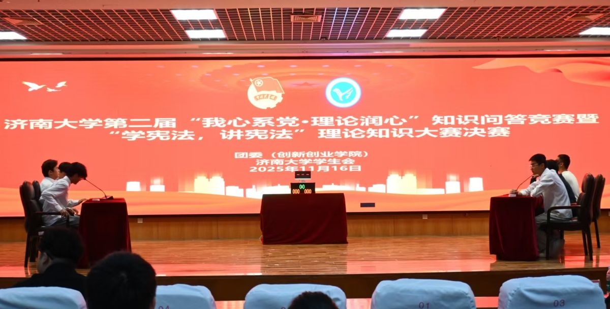 比赛期间,济南大学首届寻找青年“政治佳”十佳选手——外国语学院吕冰倩和生物科学与技术学院齐书涵,分别以“青言青语”形式讲述强国目标下青年的使命担当,推动党的创新理论和党的二十届四中全会精神入脑入心。