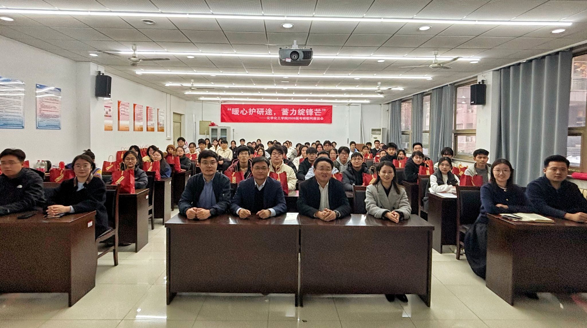 此次考研慰问座谈会,不仅为备考学子送去了学院的关怀与温暖,有效缓解了大家的考前压力,更增强了学子们的备考信心与斗志。近年来,化学化工学院始终高度重视考研工作,通过开展考研经验交流会、教工党支部考研课程答疑服务等活动,为考研学子提供全方位的支持与服务,助力大批学子圆梦理想院校。相信在学子们的不懈努力下,2026届考研学子定能在即将到来的考试中旗开得胜,再创佳绩。