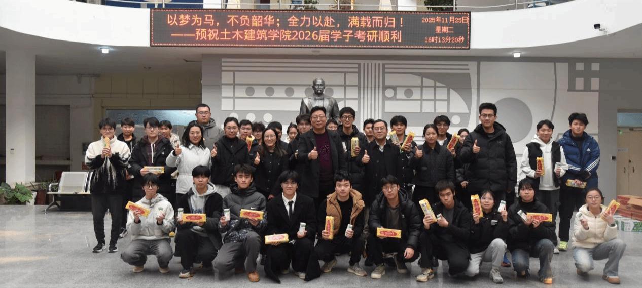 相信在学院的全力支持与学子们的不懈奋斗下,土建学院全体2026届考研学子定能轻装上阵,以饱满的精神和昂扬的斗志在考场上挥洒才华,再创佳绩,一战成“硕”。