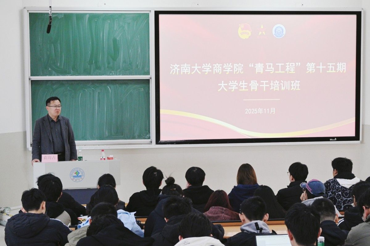 为深入学习贯彻党的二十届四中全会精神和习近平总书记关于青年工作的重要思想,落实立德树人根本任务,进一步提升青年学生骨干的思想政治素养、政策理论水平、创新能力与组织协调能力,11月19日至11月26日,商学院在舜耕校区成功举办“青马工程”第十五期大学生骨干培训班专题讲座,学院全体学生组织骨干成员及2025级新生班长、团支书参加培训。
