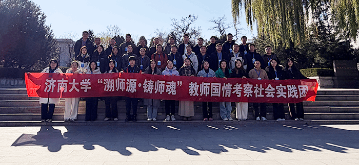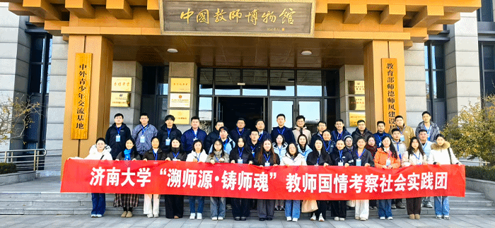 为大力弘扬教育家精神,11月,党委教师工作部组建“济南大学‘溯师源•铸师魂’教师国情考察社会实践团”,组织120余名青年教师,分为四批先后赴滨州、曲阜、淄博、兖州等地,深入党性教育基地、师德涵养基地、企业生产一线,开展国情考察社会实践活动。