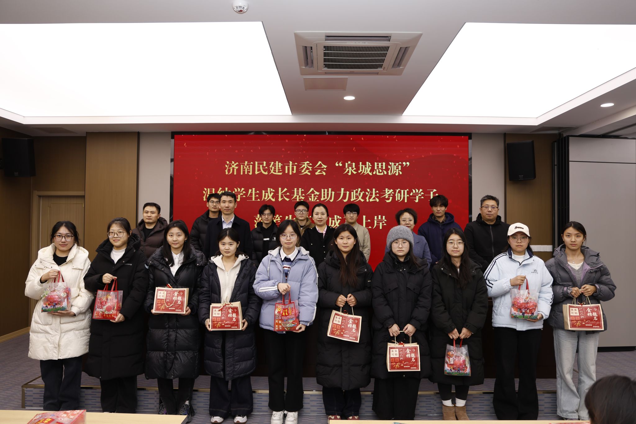 为坚定备考信心,传递温暖力量,政法学院于12月2日开展为考研学生送温暖活动。学院党委书记李春慧,党委副书记、副院长李涛,全体辅导员,民建济南市委会常委韩炜,民建市中区总支委员、山东温纳律师事务所主任、我校法学专业2005届毕业生武磊,民建市中总支六支部副主委刘爽在第五学术报告厅开展考研动员会,与会领导到图书馆、学生第21号宿舍楼、第33号宿舍楼慰问考研学子。民建济南市委会“泉城思源”公益品牌携手山东温纳律师事务所为学生准备考研“加油包”。
