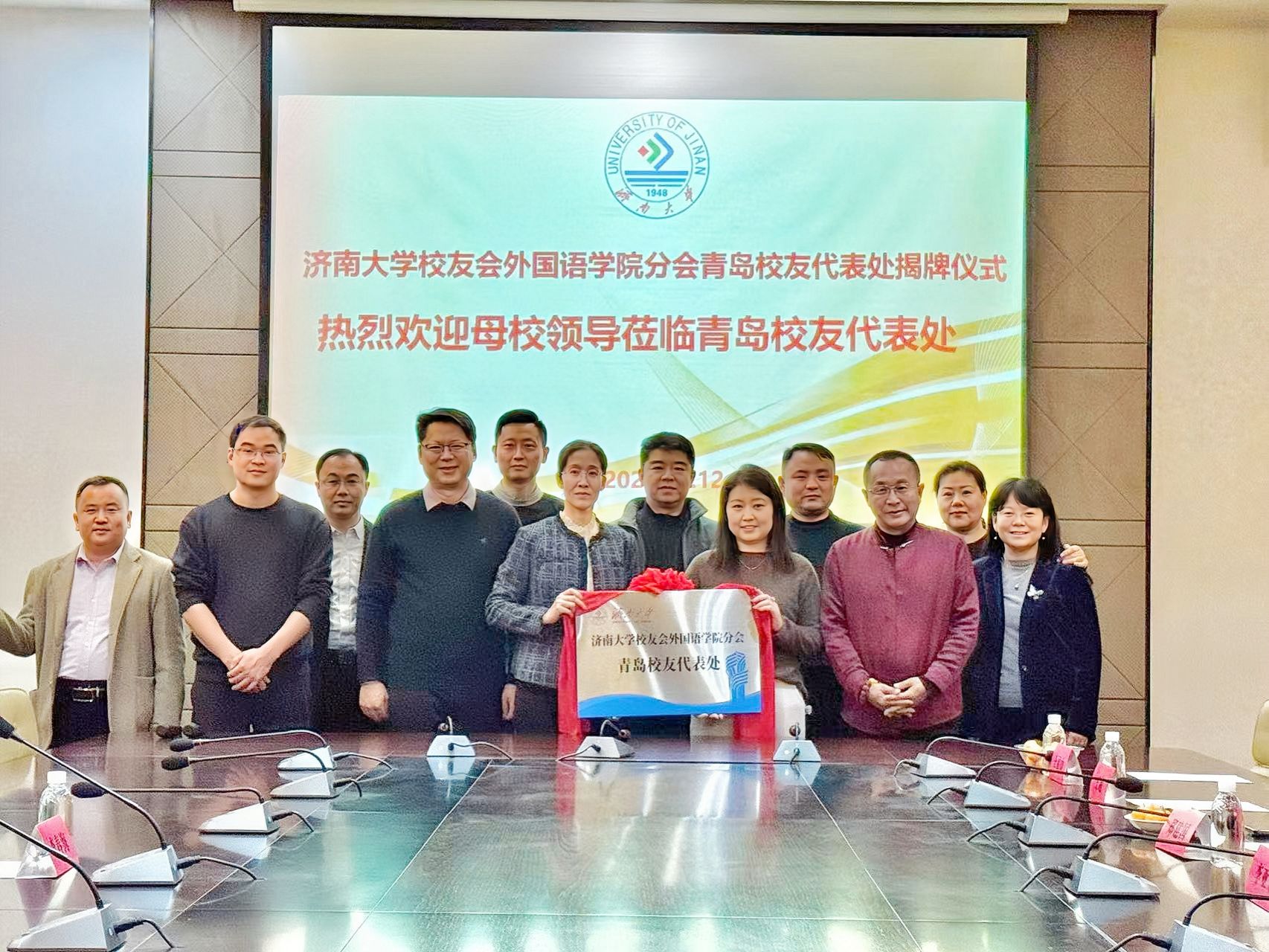 12月12日,济南大学校友会外国语学院分会青岛校友代表处揭牌仪式在青岛举行。济南大学青岛校友会会长贺丰彬,外国语学院党委书记郭英,副书记、副院长李春海和相关负责人及校友代表参加大会。大会由外国语学院2004届毕业生董涛主持。