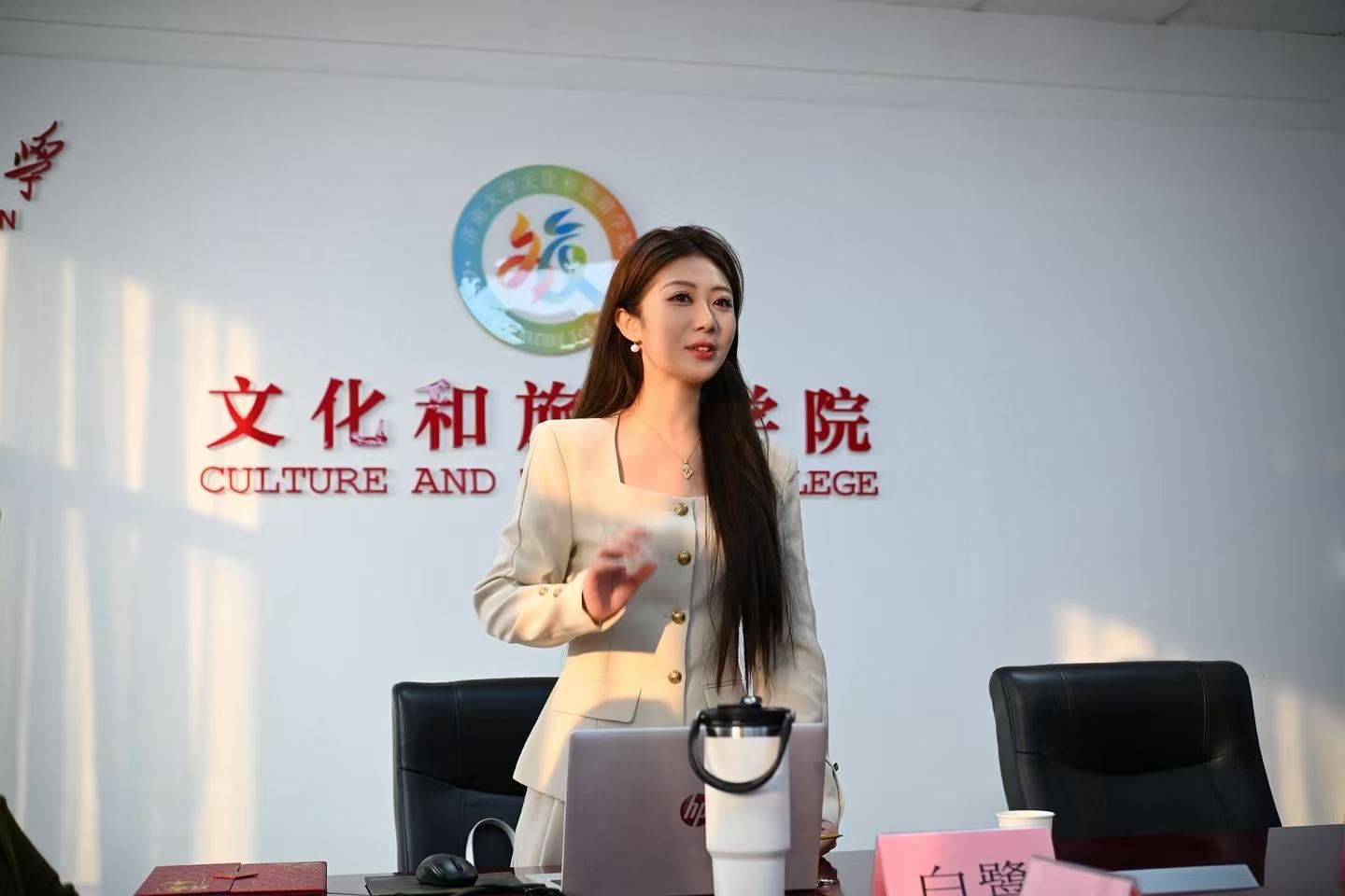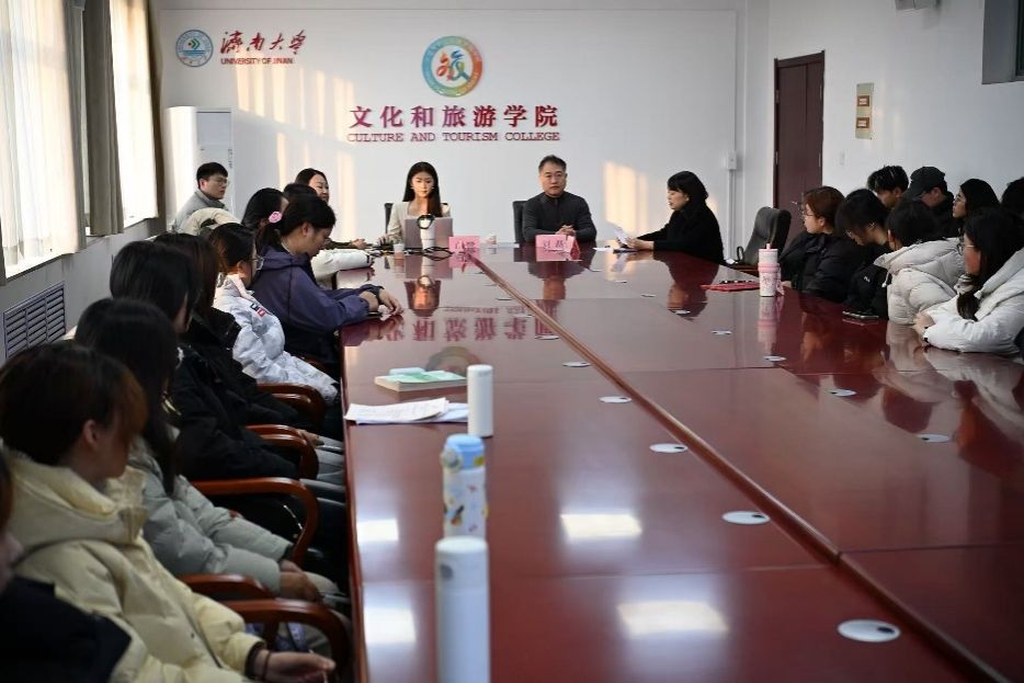 为推动党建赋能业务发展、拓宽学生视野、强化专业认同,增强课内理论与社会应用结合,切实提升学生的综合素质与核心竞争力,12月15日上午,学院文化经营管理系党支部在文旅楼会议室举办“党建+大咖进课堂”青春励志系列活动。济南广播电视台知名主持人白鹭担任主讲嘉宾,文化和旅游学院院长刘磊、文化产业管理专业的2025级学生代表参加。活动由文管系党支部书记赵斐主持