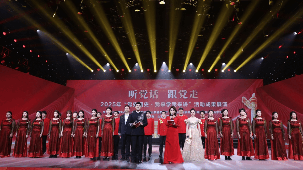 12月12日,由省关工委、省教育厅、省委党史研究院、团省委联合主办的听党话跟党走——2025年“党史国史·我来学我来讲”成果展演活动在山东教育电视台举行。我校音乐学院作为全省高校艺术实践与思政教育融合的代表,受邀参与此次高规格展演,并以压轴节目合唱《走向复兴》完成了展演的“薪火永续”篇章,用专业精湛的艺术表达和昂扬饱满的精神面貌,赢得了现场领导及观众的高度赞誉,集中展示了我院“以美育人、以文化人”的丰硕成果。
