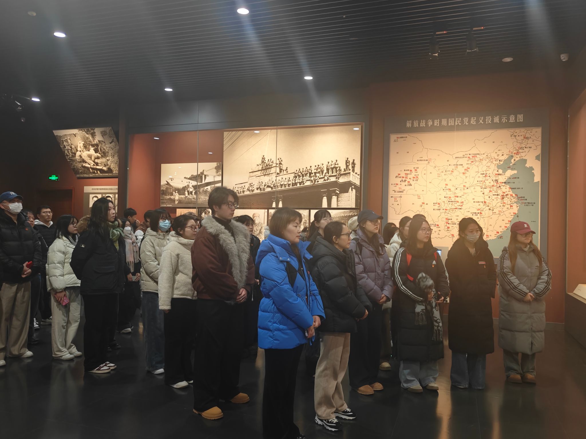 为全面领会党的二十大和二十届历次全会精神,根据学校党员发展工作要求,教育与心理科学学院坚持和完善入党宣誓制度,认真落实短期集中培训和实践锻炼,不断提高新发展学生党员思想政治觉悟,让新党员从入党开始就接受严格的党内生活锻炼。12月23日,学院组织全体2025年下半年新发展学生党员赴济南战役纪念馆开展入党宣誓和实践教育活动。在济南战役纪念馆,全体人员在讲解员引导下,参观了“战前形势”“战役实施”“胜利决战”等主题展区,通过历史照片、革命文物及影像资料,系统了解了济南战役全过程,深切感悟到革命先辈舍生忘死的崇高信仰与奋斗精神。济南战役全景画展区的沉浸式场景,进一步强化了党员们传承红色基因、赓续奋斗血脉的信念。