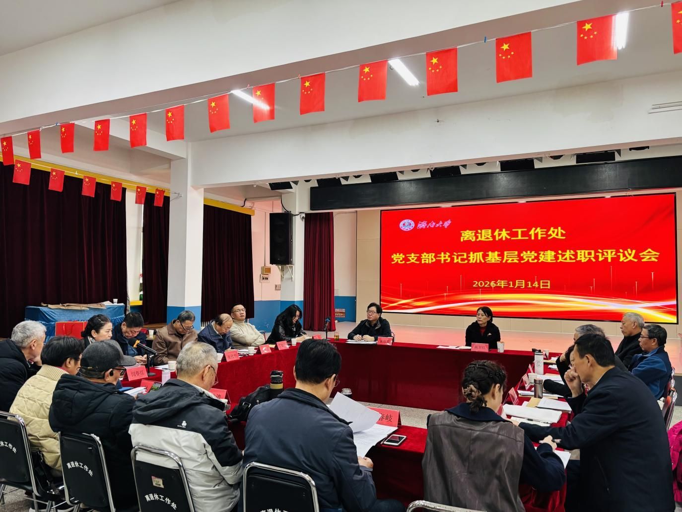 1月14日,离退休工作处党委在多功能厅举行新老书记交接仪式暨2025年度党支部书记抓基层党建述职评议会。离退休工作处班子成员、各党支部新老书记参加会议。离退休工作处党委书记董海军主持会议。