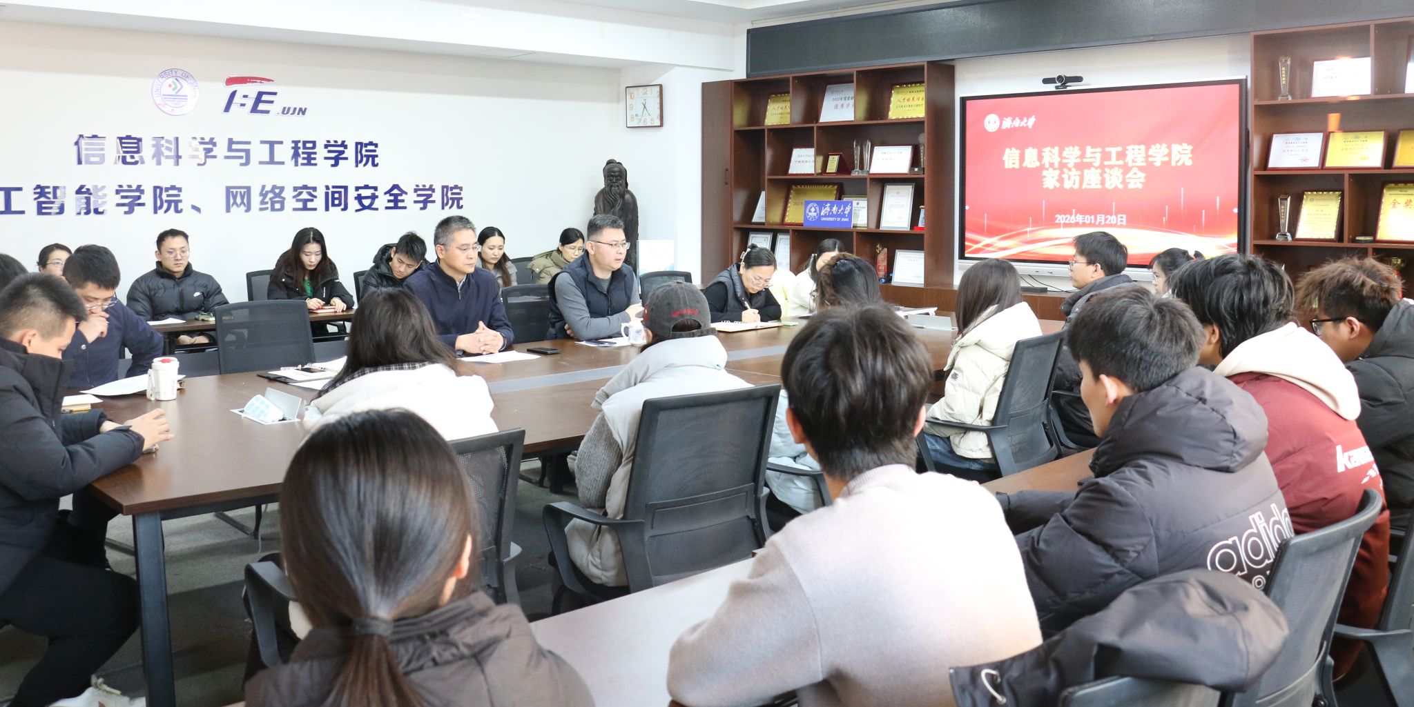 为进一步完善精准资助育人体系,深化家校协同育人机制,1月20日下午,信息科学与工程学院举办2026年寒假家访座谈会。学院党政领导班子成员、全体辅导员、班主任代表与受助学生代表齐聚一堂,并通过腾讯会议、视频连线等“云端”形式,与远在省外的学生家长进行了深入交流,为学子和家庭送去新年的关怀与温暖。会议由学院党委副书记、副院长郝伟主持。