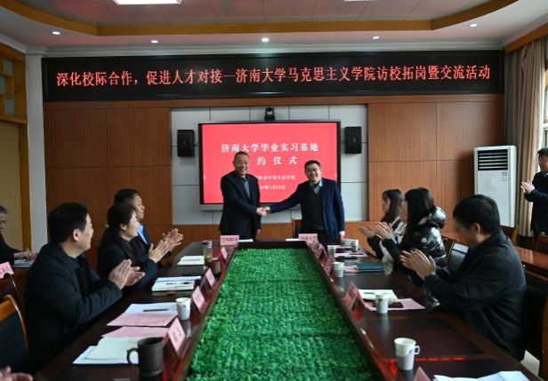 在宁阳职业中专,学院代表团实地考察校园,并就办学定位、专业发展及思政教育实践进行交流。双方聚焦大中小学思政课一体化建设、师资培训、课程资源共享等议题深入探讨。杨立志院长表示,学院将积极发挥高校资源作用,支持对方在思政课程建设与教师能力提升方面的需求。活动中,双方签署了合作协议,并为“济南大学就业实习基地”揭牌,标志着校校合作进入实质性推进阶段。