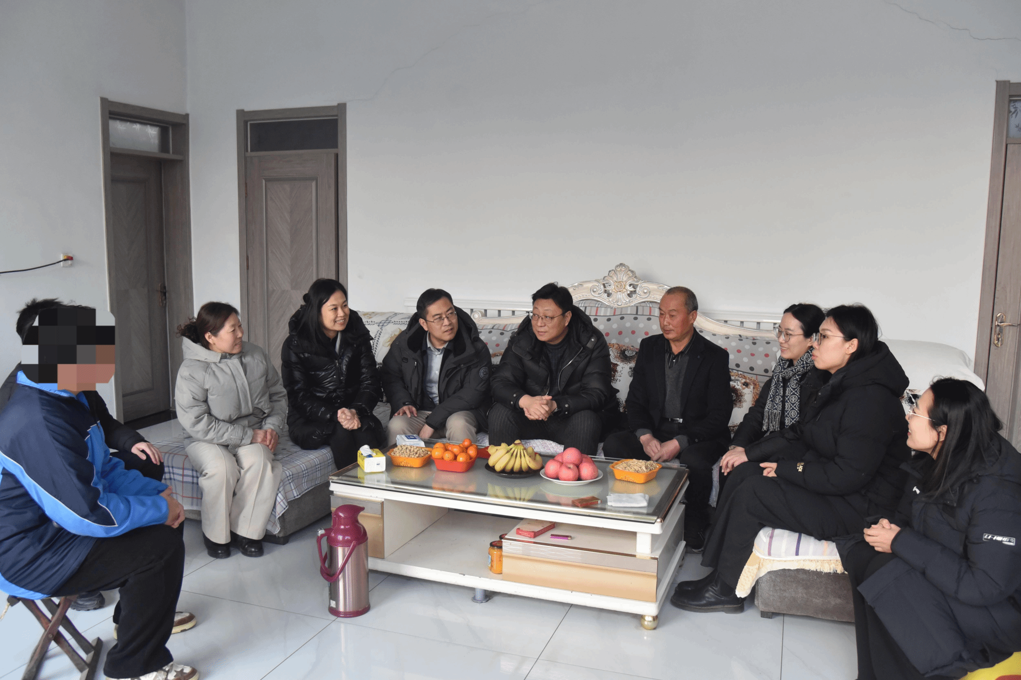 学院一行先后走访了位于济南市济阳区和滨州市阳信县的邢同学和苏同学的家庭。学院领导、老师、校友们深入了解学生家庭收入来源和生活情况,向家长反馈了学生在校期间的学习表现,并结合专业特点,一起探讨了学生的学业规划和未来发展。曾受家访帮扶的优秀校友姬广蓬结合自身成长经历,勉励学弟学妹们要珍惜韶华,不畏艰难,奋力拼搏,实现“受助-自助-助人”的爱心接力。李超代表学院为学生家庭送上慰问金与新年慰问品,将学校学院的深切关怀、暖心问候与新春祝福传递给家长与学生。