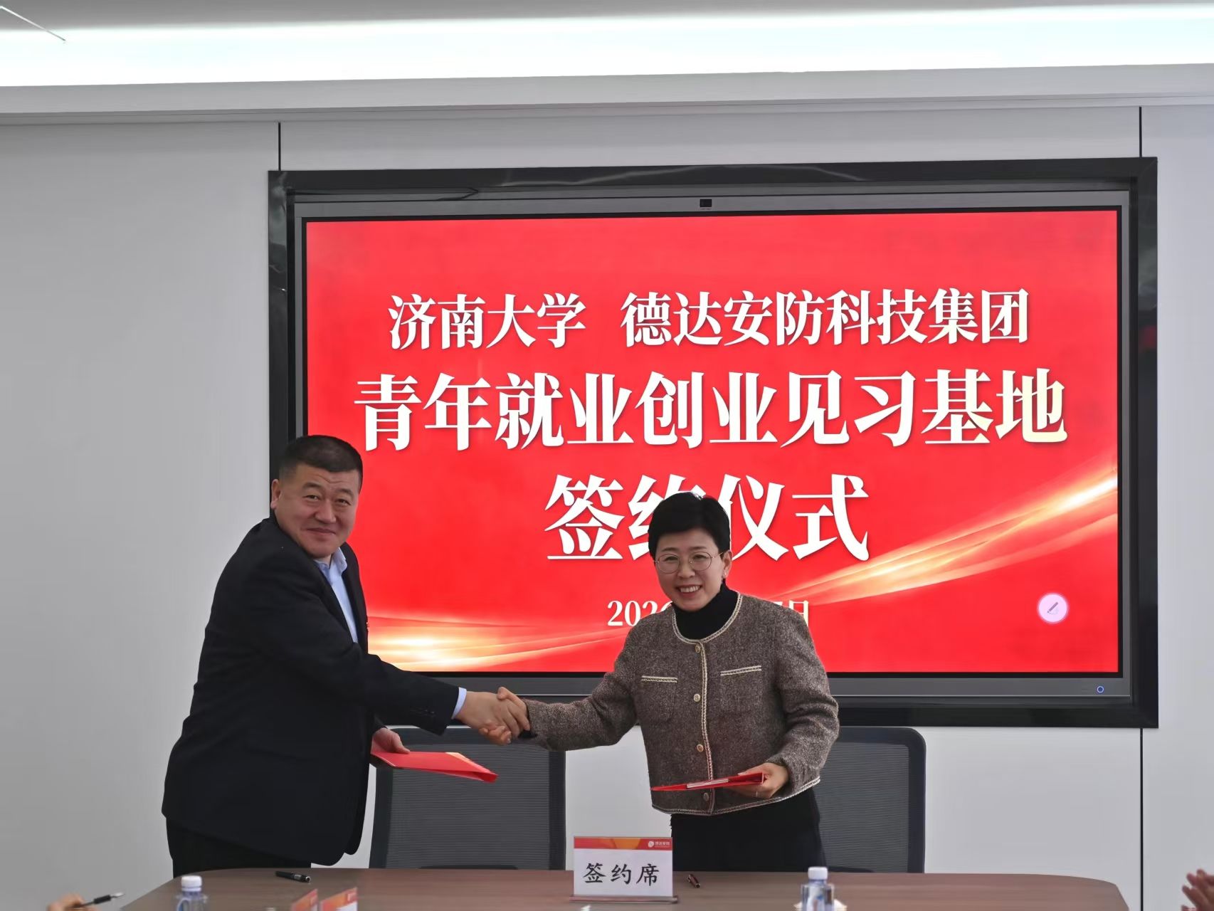 1月27日上午,学院一行到访德州德达安防科技集团有限公司,与德州市体育局党组书记、局长李如民,市国资委三级调研员李霞,德达集团党委书记、董事长吕光坤,党委委员吴卫国,德达安防集团党委书记、董事长邵智军等共同见证济南大学与德达安防集团合作签约暨青年就业创业见习基地揭牌仪式,并参观德达安防集团智慧化园区建设。座谈中,双方聚焦校企协同育人、实践教学改革、就业创业扶持等关键领域达成深度共识,明确将依托学院信息管理与信息技术、应急管理等专业优势,在人才定制培养、产学研项目合作、应急产业化培训等方面开展全方位合作。吕光坤表示,集团正处于数字化、智能化转型关键期,迫切需要高素质专业人才,期待与学院携手打造“实习-就业-创业”一体化培养链条,实现校企互利共赢。王勇强调,此次合作是学院锚定“十五五”规划、服务区域产业发展的重要举措,学院将以见习基地为纽带,以济南大学优势学科为锚点,持续优化人才培养方案,推动科研成果转化,为企业发展输送更多“管理+技术”复合型人才。