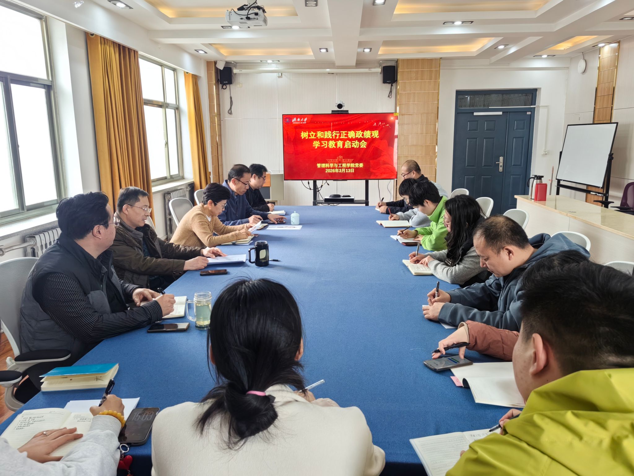 会议强调,开展树立和践行正确政绩观学习教育是一项严肃的政治任务,要坚持主题聚焦,从政治和全局高度深刻认识其重要性、必要性与现实紧迫性,统一思想行动、主动抓好落实。要坚持学查改一体推进,紧密结合学院实际,突出教育领域特色,在深学、真查、实改上持续用力,切实把问题找准、找实,推动整改落地见效。要坚持坚守育人初心,将正确政绩观贯穿人才培养、学科建设、科研创新、师生服务全过程,遵循教育规律,以实干实绩践行立德树人使命。要坚持服务发展大局,统筹推进学院重点工作,坚持“当下改”与“长久立”相结合,健全常态长效机制,一张蓝图绘到底,把学习教育成效转化为谋划和推进“十五五”规划编制实施的强大动力。要坚持开门纳谏听民意,自觉接受师生监督评判,把好事办细办实,推动学习教育取得更多师生可感可及的扎实成果。