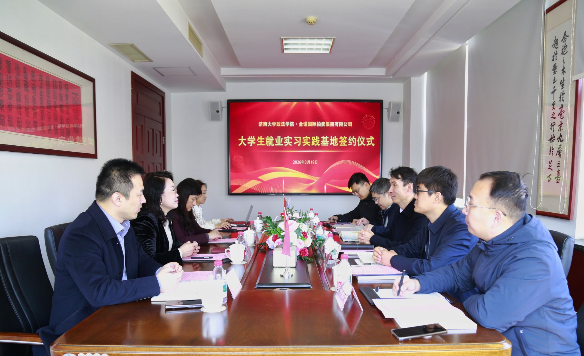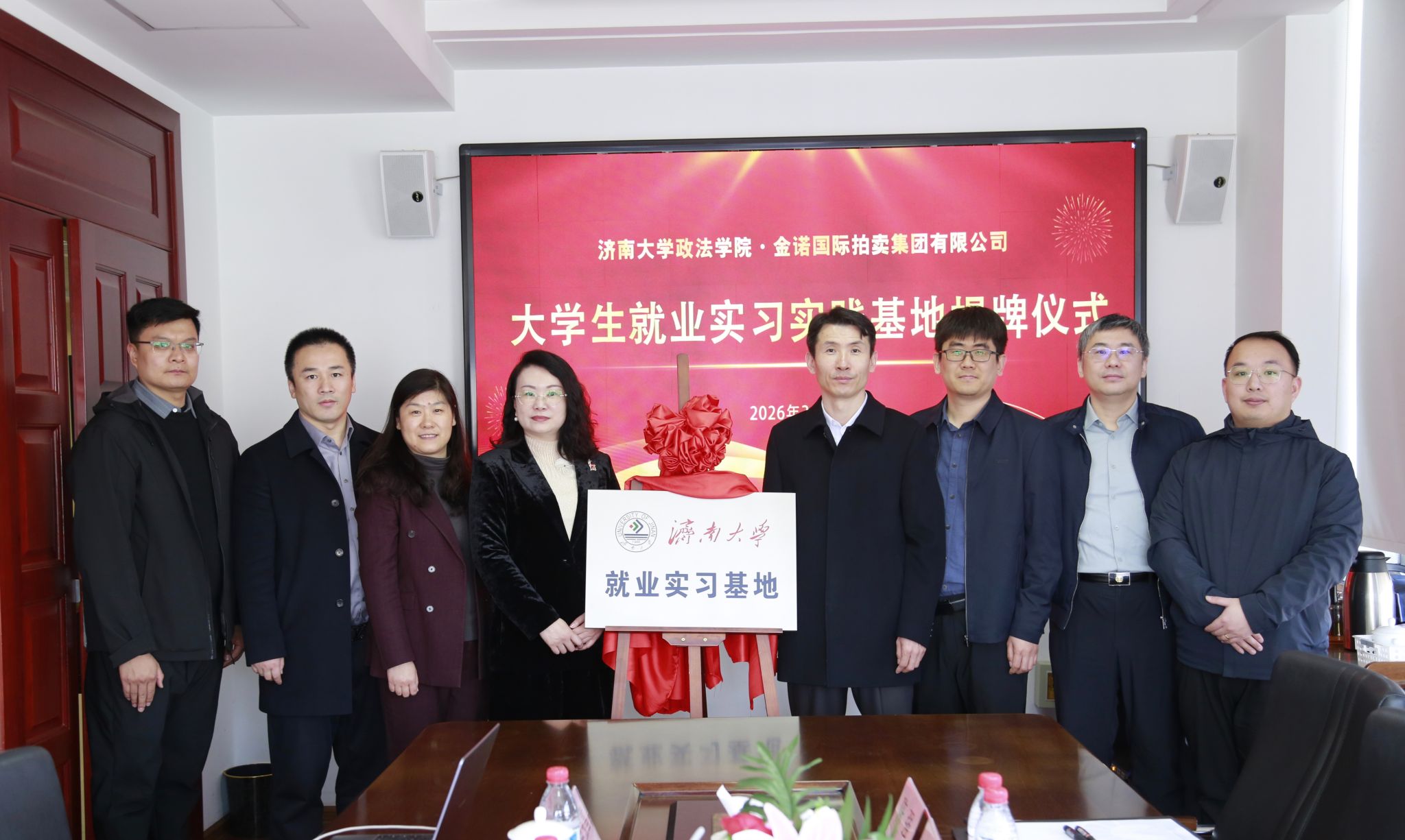 为深入落实“访企拓岗”专项行动要求,深化校友联络、拓展就业渠道,3月19日上午,济南大学政法学院党委副书记、副院长李涛,副院长张国栋,院长助理陈强,辅导员沈正浩、李纪亮一行赴金诺国际拍卖集团有限公司走访交流,举行大学生就业实习实践基地签约暨授牌仪式。沃尔德集团总裁林擘,金诺国拍集团总裁位琳,沃尔德集团办公室主任李群,金诺司辅信息服务(山东)有限公司总经理刘仰军,金诺国拍集团办公室主任申玉雪等出席活动。